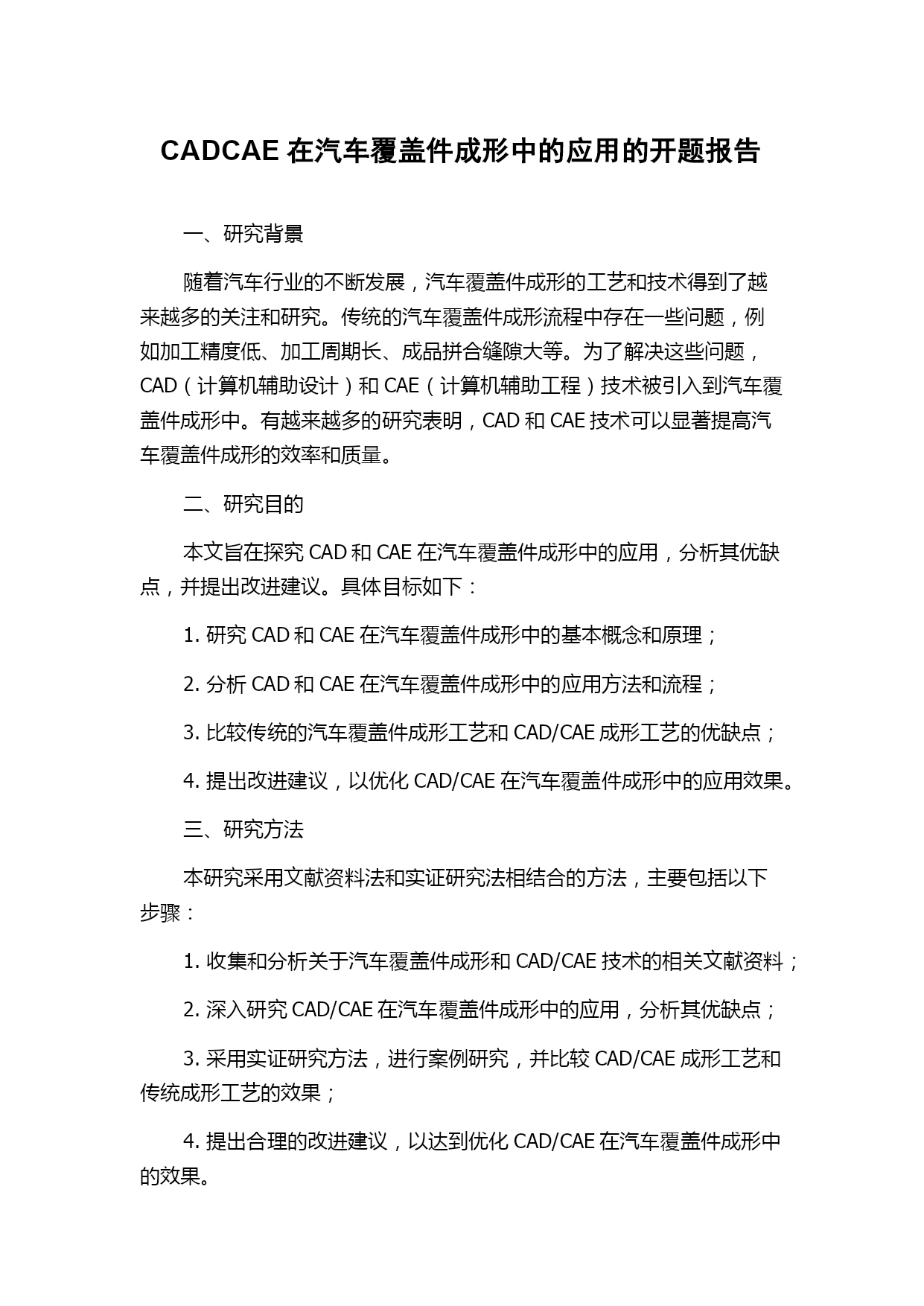CADCAE在汽车覆盖件成形中的应用的开题报告.docx