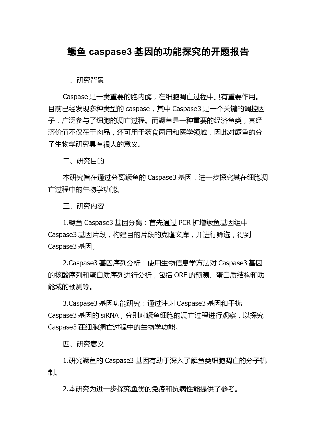 鳜鱼caspase3基因的功能探究的开题报告.docx