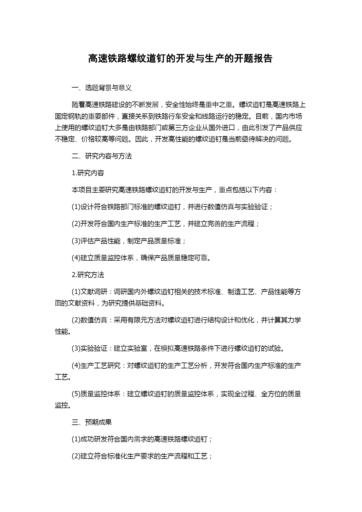 高速铁路螺纹道钉的开发与生产的开题报告.docx