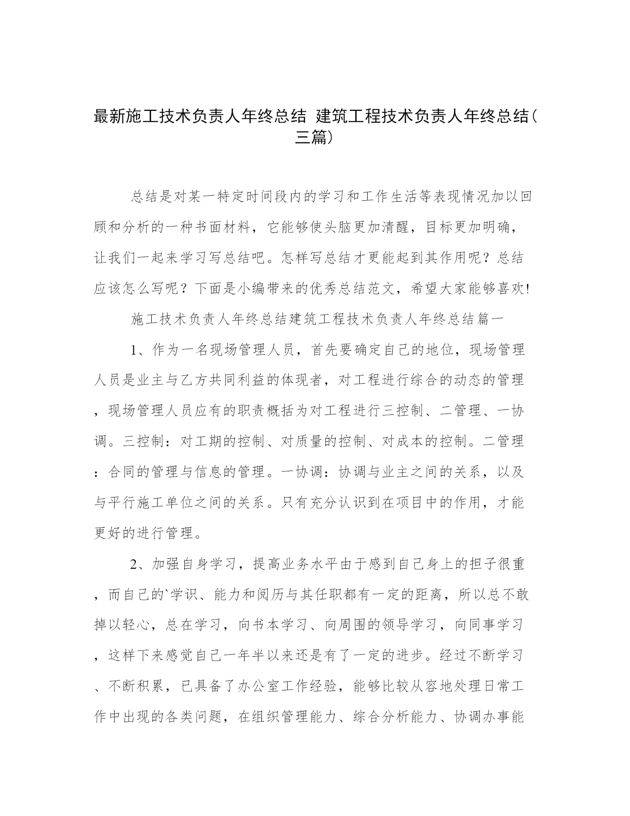 最新施工技术负责人年终总结 建筑工程技术负责人年终总结(三篇).docx