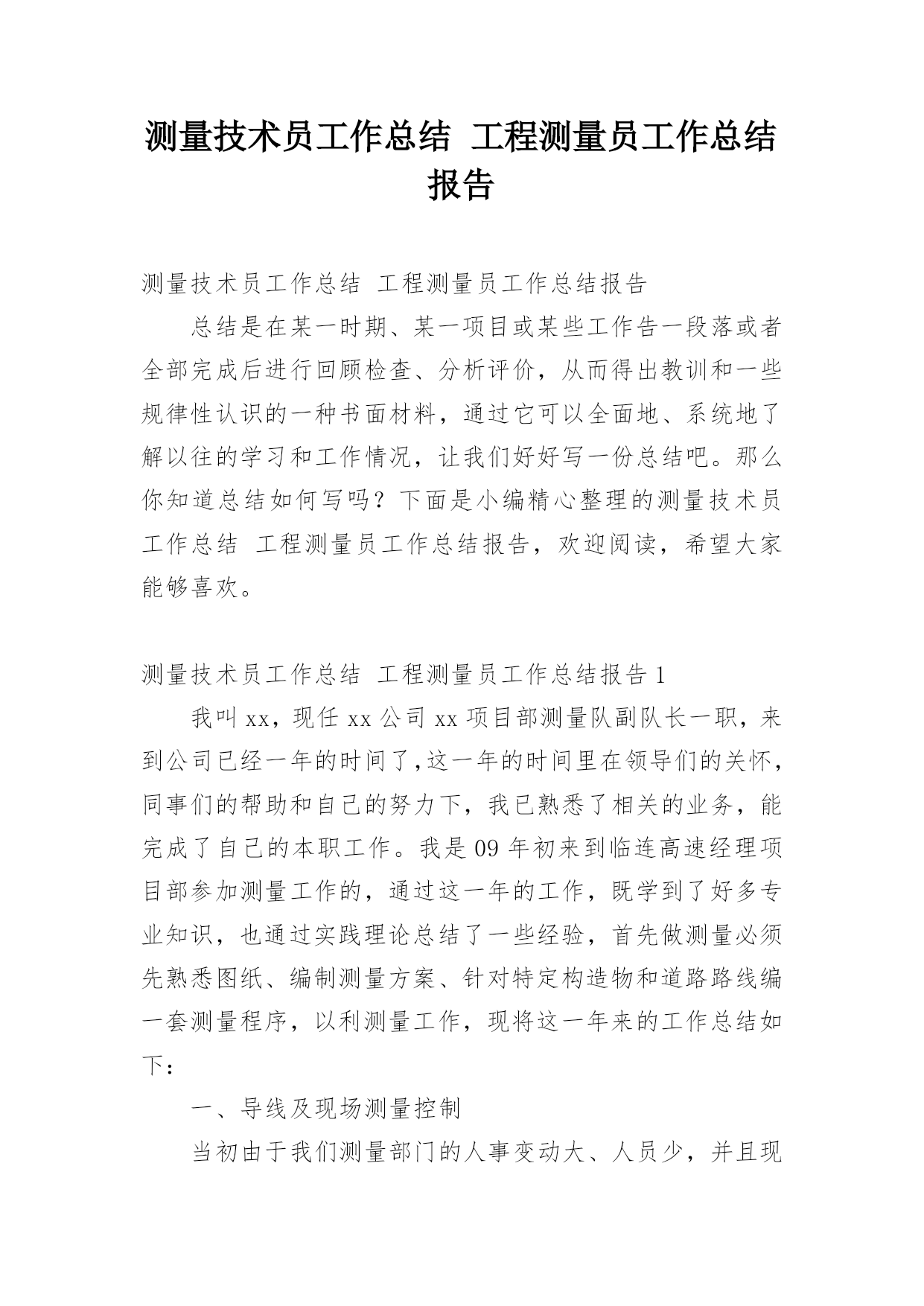 测量技术员工作总结 工程测量员工作总结报告.docx