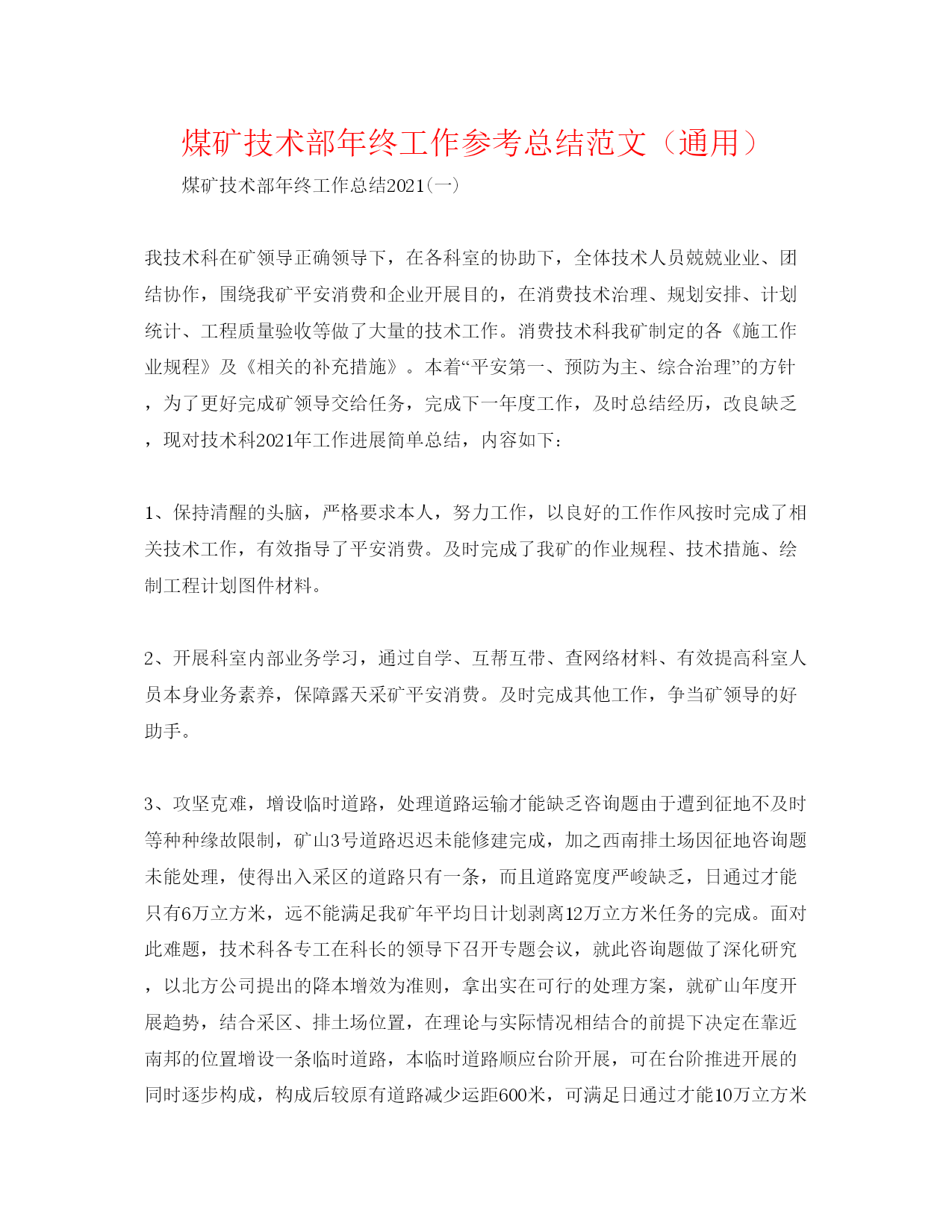2022煤矿技术部年终工作参考总结范文(通用).docx