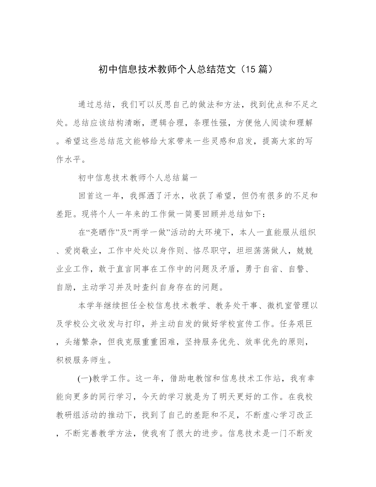 初中信息技术教师个人总结范文(15篇).docx