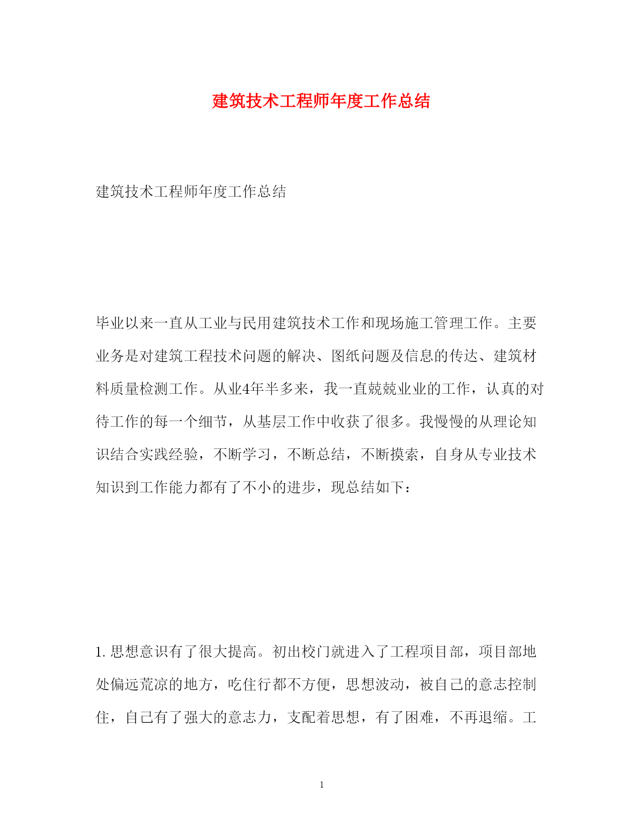 此资料由网络收集而来,如有侵权请告知上传者立即删除。资料共分享,我们负责传递知识。PAGEPAGE4建筑技术工程师年度工作总结建筑技术工程师年度工作总结毕业以来一直从工业与民用建筑技术工作和现场施工管理工作。主要业务是对建筑工程技术问题的解决、图纸问题及信息的传达、建筑材料质量检测工作。从业4年半多来,我一直兢兢业业的工作,认真的对待工作的每一个细节,从基层工作中收获了很多。我慢慢的从理论知识结合实践经验,不断学习,不断总结,不断摸索,自身从专业技术知识到工作能力都有了不小的进步,现总结如下: