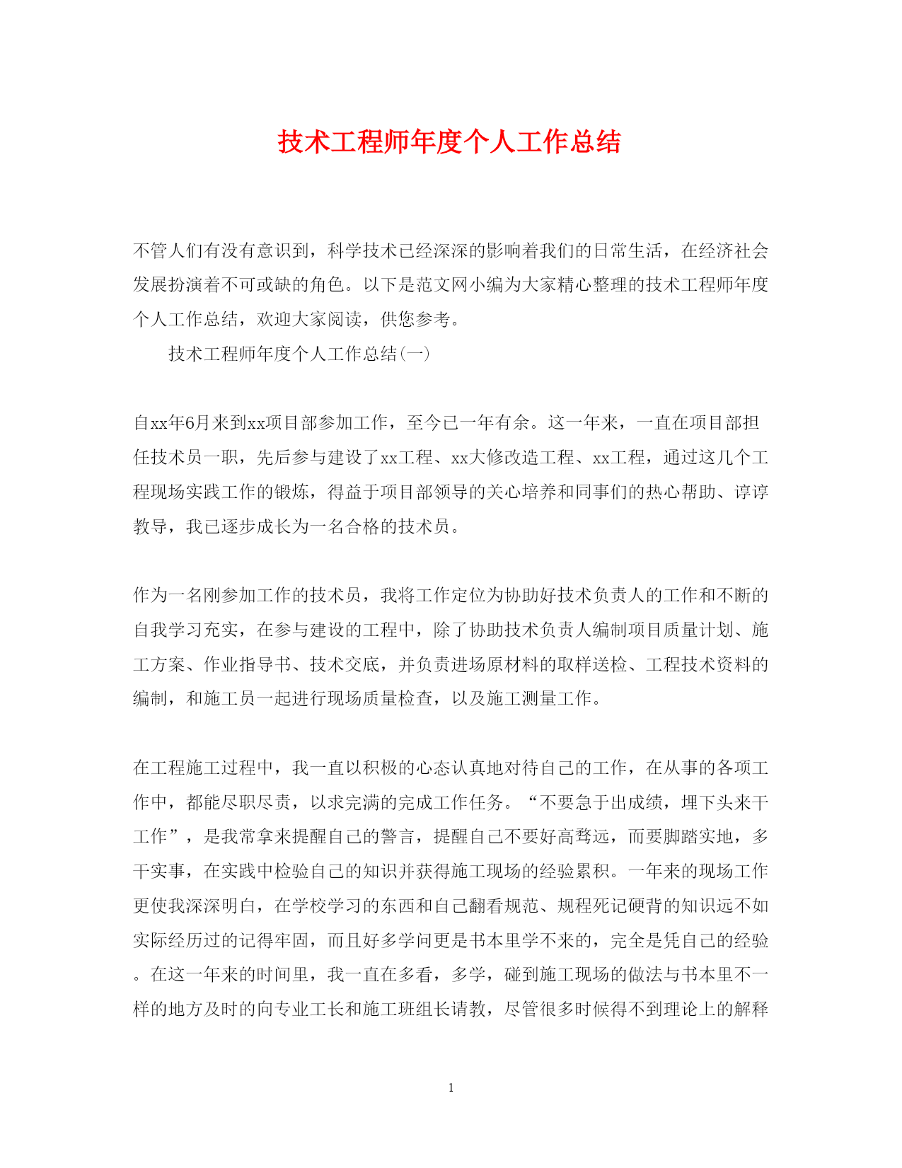 此资料由网络收集而来,如有侵权请告知上传者立即删除。资料共分享,我们负责传递知识。PAGEPAGE12技术工程师年度个人工作总结不管人们有没有意识到,科学技术已经深深的影响着我们的日常生活,在经济社会发展扮演着不可或缺的角色。以下是范文网小编为大家精心整理的技术工程师年度个人工作总结,欢迎大家阅读,供您参考。技术工程师年度个人工作总结(一)自xx年6月来到xx项目部参加工作,至今已一年有余。这一年来,一直在项目部担任技术员一职,先后参与建设了xx工程、xx大修改造工程、xx工程,通过这几个工程