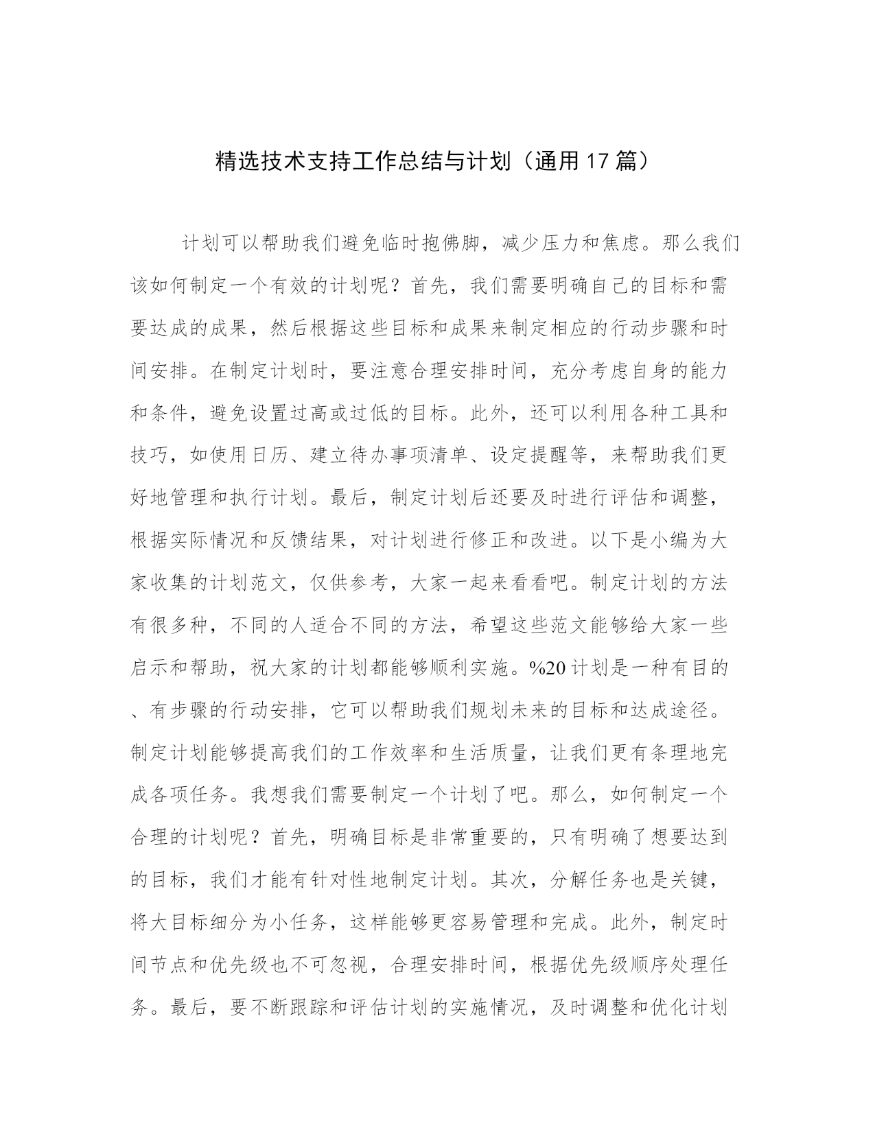 精选技术支持工作总结与计划(通用17篇)计划可以帮助我们避免临时抱佛脚,减少压力和焦虑。那么我们该如何制定一个有效的计划呢?首先,我们需要明确自己的目标和需要达成的成果,然后根据这些目标和成果来制定相应的行动步骤和时间安排。在制定计划时,要注意合理安排时间,充分考虑自身的能力和条件,避免设置过高或过低的目标。此外,还可以利用各种工具和技巧,如使用日历、建立待办事项清单、设定提醒等,来帮助我们更好地管理和执行计划。最后,制定计划后还要及时进行评估和调整,根据实际情况和反馈结果,对计划进行修正和改进。以下是小