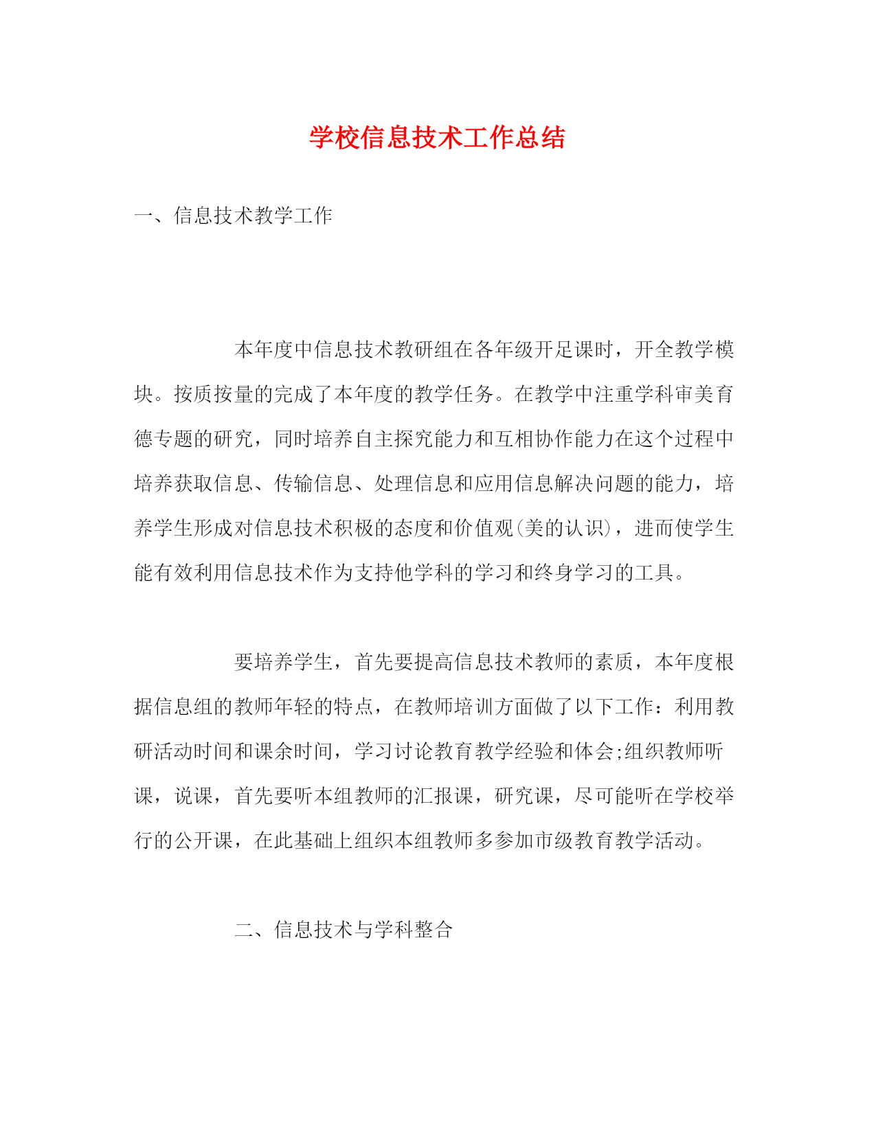 PAGE此资料由网络收集而来,如有侵权请告知上传者立即删除。资料共分享,我们负责传递知识。学校信息技术工作总结一、信息技术教学工作本年度中信息技术教研组在各年级开足课时,开全教学模块。按质按量的完成了本年度的教学任务。在教学中注重学科审美育德专题的研究,同时培养自主探究能力和互相协作能力在这个过程中培养获取信息、传输信息、处理信息和应用信息解决问题的能力,培养学生形成对信息技术积极的态度和价值观(美的认识),进而使学生能有效利用信息技术作为支持他学科的学习和终身学习的工具。要培养学生,首先要提高信息