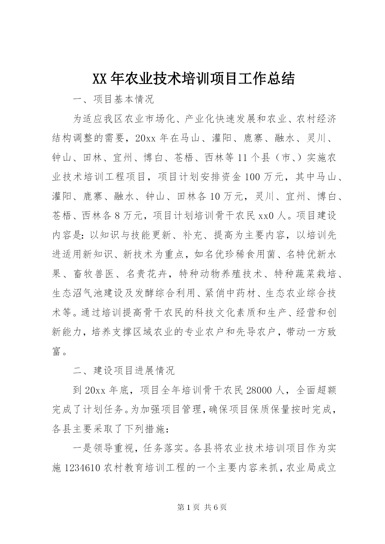 第PAGE\*Arabic\*MERGEFORMAT6页共NUMPAGES\*MERGEFORMAT6页XX年农业技术培训项目工作总结一、项目基本情况为适应我区农业市场化、产业化快速发展和农业、农村经济结构调整的需要,20xx年在马山、灌阳、鹿寨、融水、灵川、钟山、田林、宜州、博白、苍梧、西林等11个县(市、)实施农业技术培训工程项目,项目计划安排资金100万元,其中马山、灌阳、鹿寨、融水、钟山、田林各10万元,灵川、宜州、博白、苍梧、西林各8万元,项目计划培训骨干农民xx0人。项目建设内容是