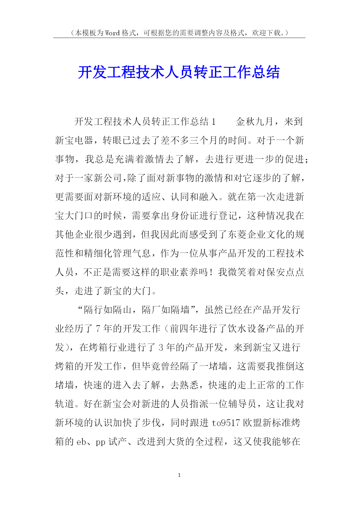 (本模板为Word格式,可根据您的需要调整内容及格式,欢迎下载。)PAGE\*MERGEFORMAT5开发工程技术人员转正工作总结开发工程技术人员转正工作总结1金秋九月,来到新宝电器,转眼已过去了差不多三个月的时间。对于一个新事物,我总是充满着激情去了解,去进行更进一步的促进;对于一家新公司,除了面对新事物的激情和对它逐步的了解,更需要面对新环境的适应、认同和融入。就在第一次走进新宝大门口的时候,需要拿出身份证进行登记,这种情况我在其他企业很少遇到,但我因此而感受到了东菱企业文化的规范性和精细化管理