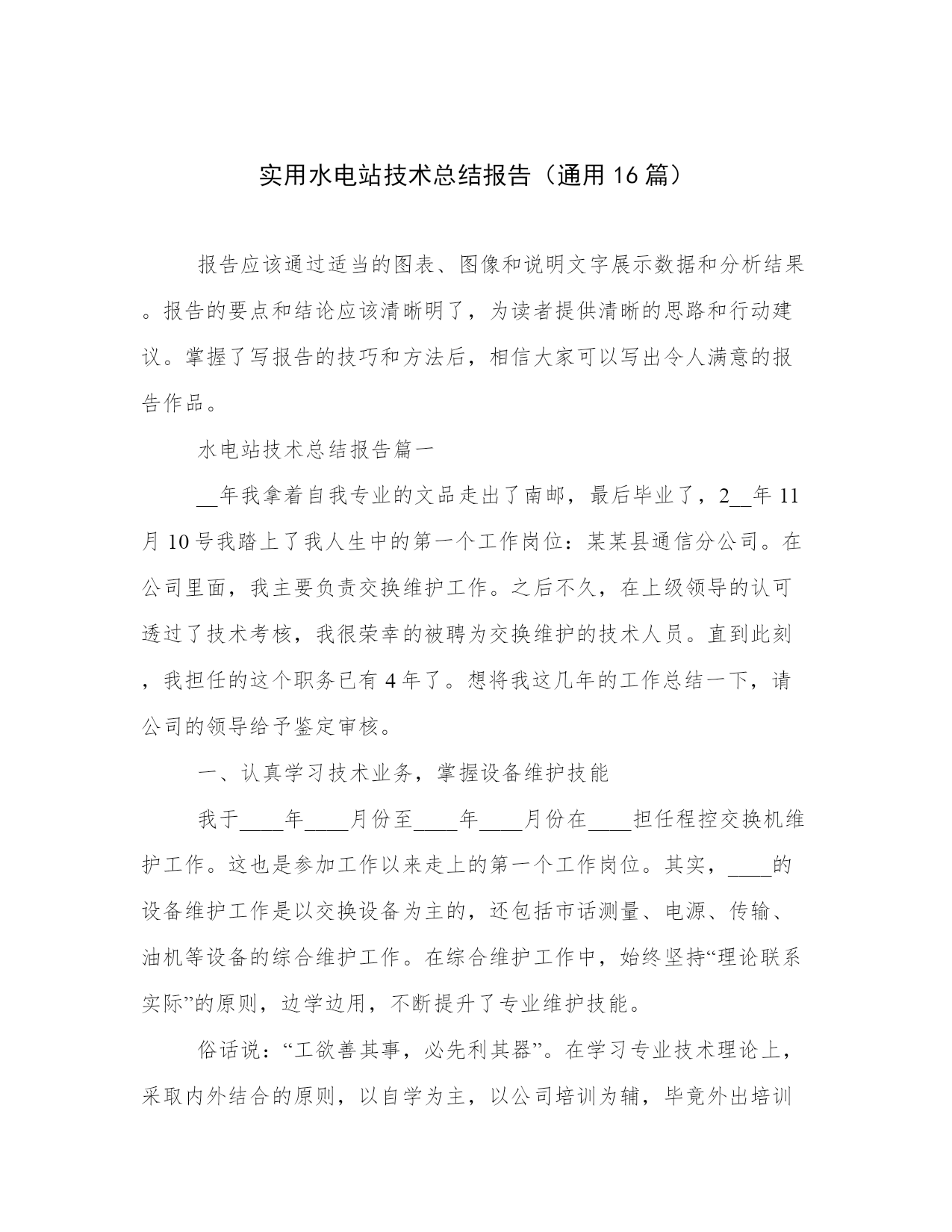 实用水电站技术总结报告(通用16篇)报告应该通过适当的图表、图像和说明文字展示数据和分析结果。报告的要点和结论应该清晰明了,为读者提供清晰的思路和行动建议。掌握了写报告的技巧和方法后,相信大家可以写出令人满意的报告作品。水电站技术总结报告篇一__年我拿着自我专业的文品走出了南邮,最后毕业了,2__年11月10号我踏上了我人生中的第一个工作岗位:某某县通信分公司。在公司里面,我主要负责交换维护工作。之后不久,在上级领导的认可透过了技术考核,我很荣幸的被聘为交换维护的技术人员。直到此刻,我担任的这个职务已有4