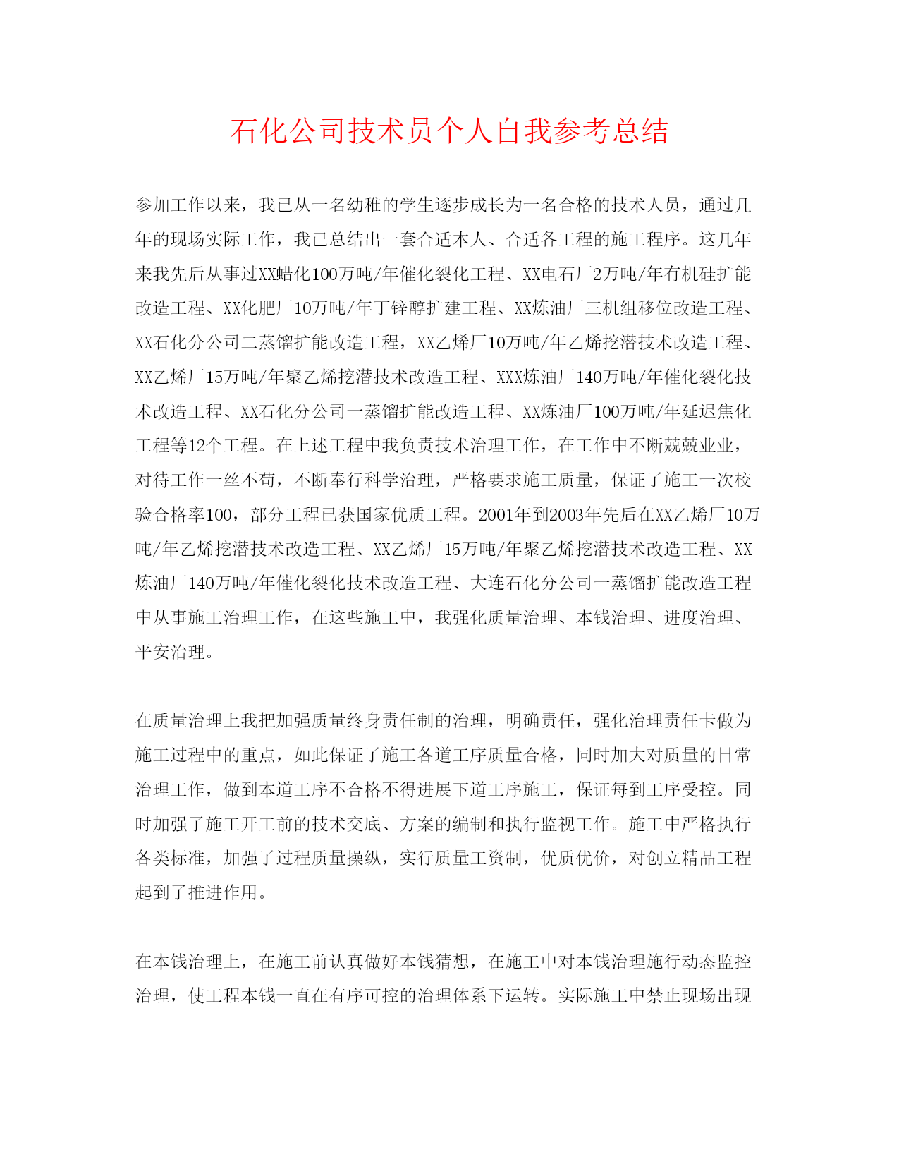 石化公司技术员个人自我参考总结参加工作以来,我已从一名幼稚的学生逐步成长为一名合格的技术人员,通过几年的现场实际工作,我已总结出一套合适本人、合适各工程的施工程序。这几年来我先后从事过XX蜡化100万吨/年催化裂化工程、XX电石厂2万吨/年有机硅扩能改造工程、XX化肥厂10万吨/年丁锌醇扩建工程、XX炼油厂三机组移位改造工程、XX石化分公司二蒸馏扩能改造工程,XX乙烯厂10万吨/年乙烯挖潜技术改造工程、XX乙烯厂15万吨/年聚乙烯挖潜技术改造工程、XXX炼油厂140万吨/年催化裂化技术改造工程、XX石化分