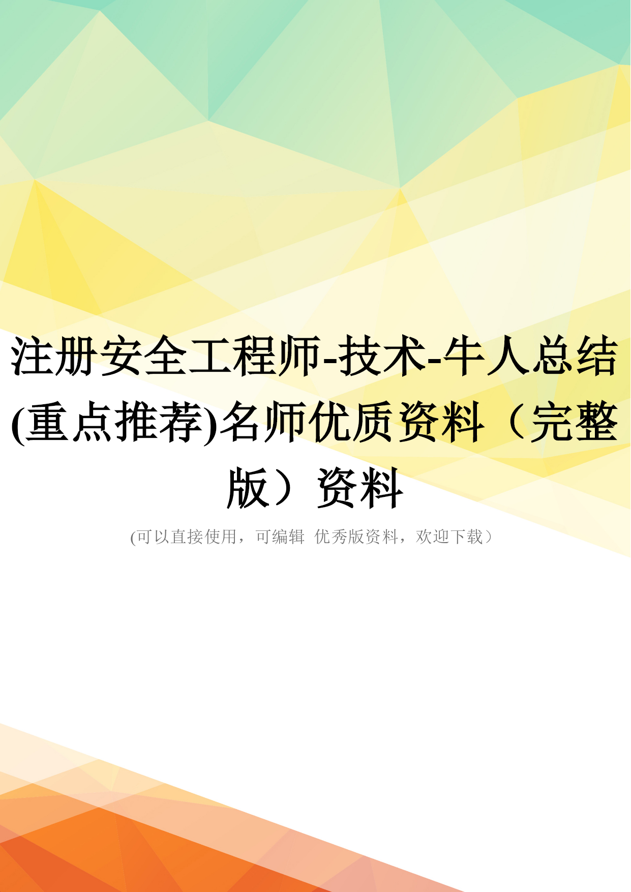 注册安全工程师-技术-牛人总结(重点推荐)名师.doc