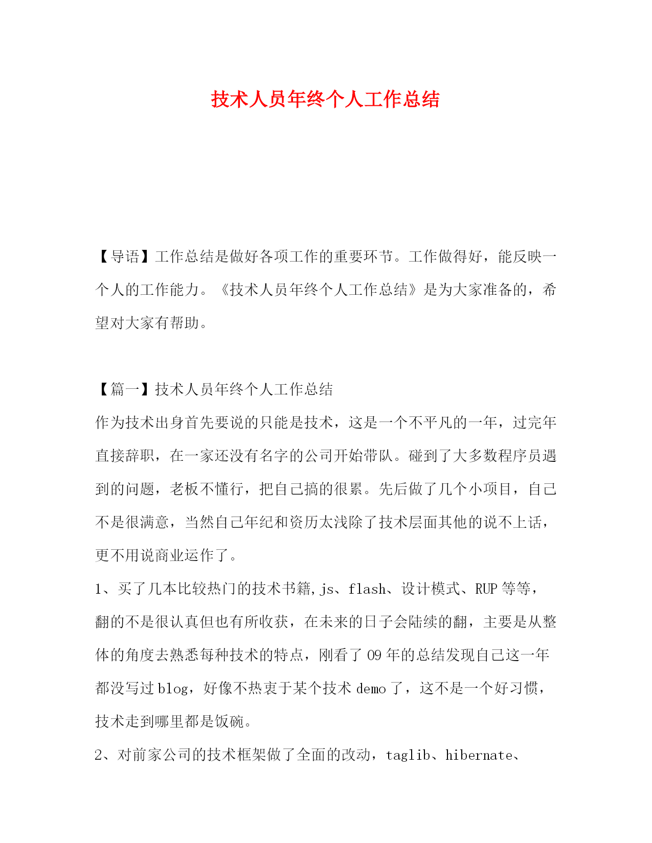 PAGE此资料由网络收集而来,如有侵权请告知上传者立即删除。资料共分享,我们负责传递知识。技术人员年终个人工作总结【导语】工作总结是做好各项工作的重要环节。工作做得好,能反映一个人的工作能力。《技术人员年终个人工作总结》是为大家准备的,希望对大家有帮助。【篇一】技术人员年终个人工作总结作为技术出身首先要说的只能是技术,这是一个不平凡的一年,过完年直接辞职,在一家还没有名字的公司开始带队。碰到了大多数程序员遇到的问题,老板不懂行,把自己搞的很累。先后做了几个小项目,自己不是很满意,当然自己年纪和资历太