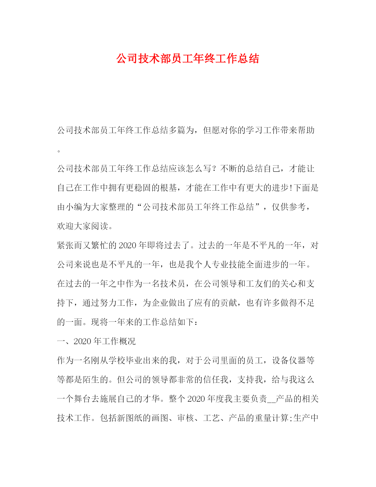 PAGE此资料由网络收集而来,如有侵权请告知上传者立即删除。资料共分享,我们负责传递知识。公司技术部员工年终工作总结公司技术部员工年终工作总结多篇为,但愿对你的学习工作带来帮助。公司技术部员工年终工作总结应该怎么写?不断的总结自己,才能让自己在工作中拥有更稳固的根基,才能在工作中有更大的进步!下面是由小编为大家整理的“公司技术部员工年终工作总结”,仅供参考,欢迎大家阅读。紧张而又繁忙的2020年即将过去了。过去的一年是不平凡的一年,对公司来说也是不平凡的一年,也是我个人专业技能全面进步的一年。在过去