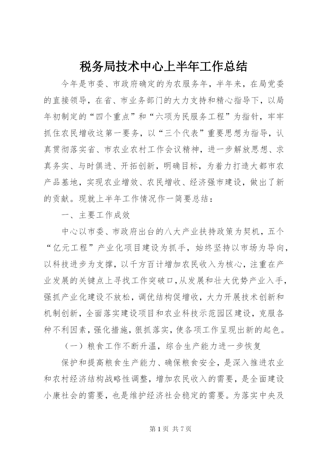 第PAGE\*Arabic\*MERGEFORMAT7页共NUMPAGES\*MERGEFORMAT7页税务局技术中心上半年工作总结今年是市委、市政府确定的为农服务年,半年来,在局党委的直接领导,在省、市业务部门的大力支持和精心指导下,以局年初制定的“四个重点”和“六项为民服务工程”为指针,牢牢抓住农民增收这第一要务,以“三个代表”重要思想为指导,认真贯彻落实省、市农业农村工作会议精神,进一步解放思想、求真务实、与时俱进、开拓创新,明确目标,为着力打造大都市农产品基地,实现农业增效、农民增收、