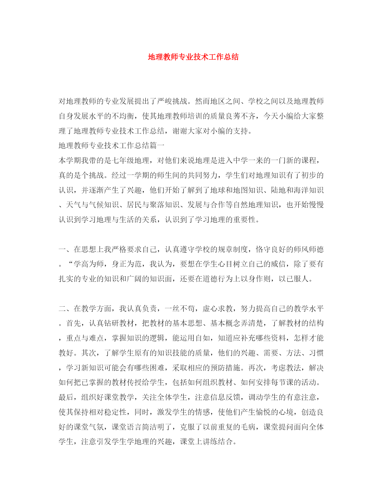 此资料由网络收集而来,如有侵权请告知上传者立即删除。资料共分享,我们负责传递知识。地理教师专业技术工作总结对地理教师的专业发展提出了严峻挑战。然而地区之间、学校之间以及地理教师自身发展水平的不均衡,使其地理教师培训的质量良莠不齐,今天小编给大家整理了地理教师专业技术工作总结,谢谢大家对小编的支持。地理教师专业技术工作总结篇一本学期我带的是七年级地理,对他们来说地理是进入中学一来的一门新的课程,真的是个挑战。经过一学期的师生间的共同努力,学生们对地理知识有了初步的认识,并逐渐产生了兴趣,他们开始了解到了地球