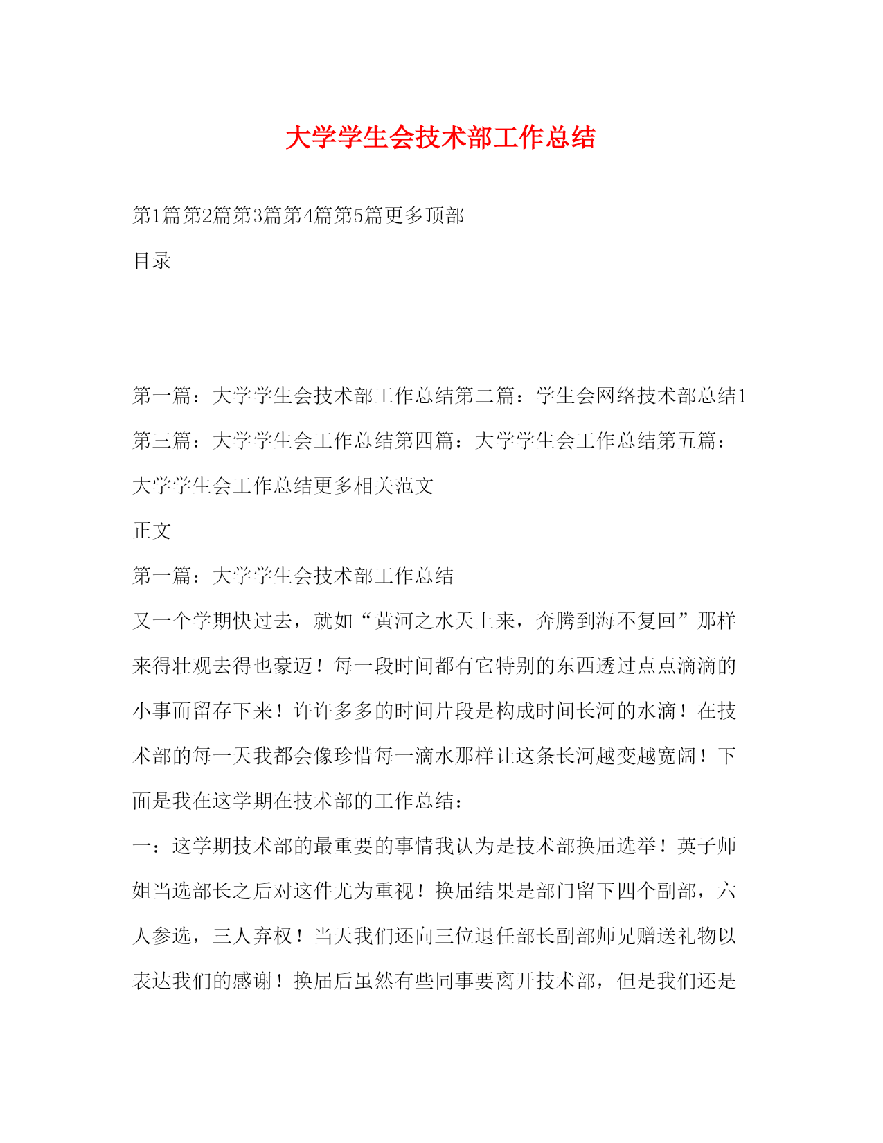 PAGE此资料由网络收集而来,如有侵权请告知上传者立即删除。资料共分享,我们负责传递知识。大学学生会技术部工作总结第1篇第2篇第3篇第4篇第5篇更多顶部目录第一篇:大学学生会技术部工作总结第二篇:学生会网络技术部总结1第三篇:大学学生会工作总结第四篇:大学学生会工作总结第五篇:大学学生会工作总结更多相关范文正文第一篇:大学学生会技术部工作总结又一个学期快过去,就如“黄河之水天上来,奔腾到海不复回”那样来得壮观去得也豪迈!每一段时间都有它特别的东西透过点点滴滴的小事而留存下来!许许多多的时间片段是构成