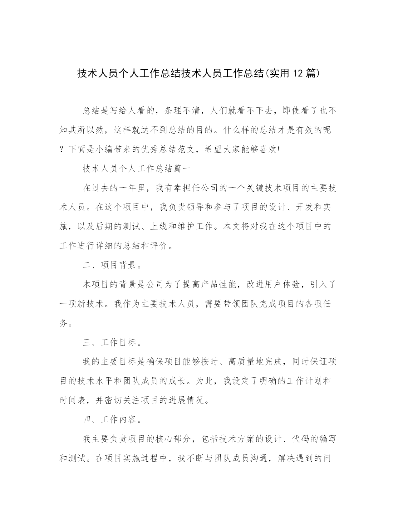 技术人员个人工作总结技术人员工作总结(实用12篇).docx