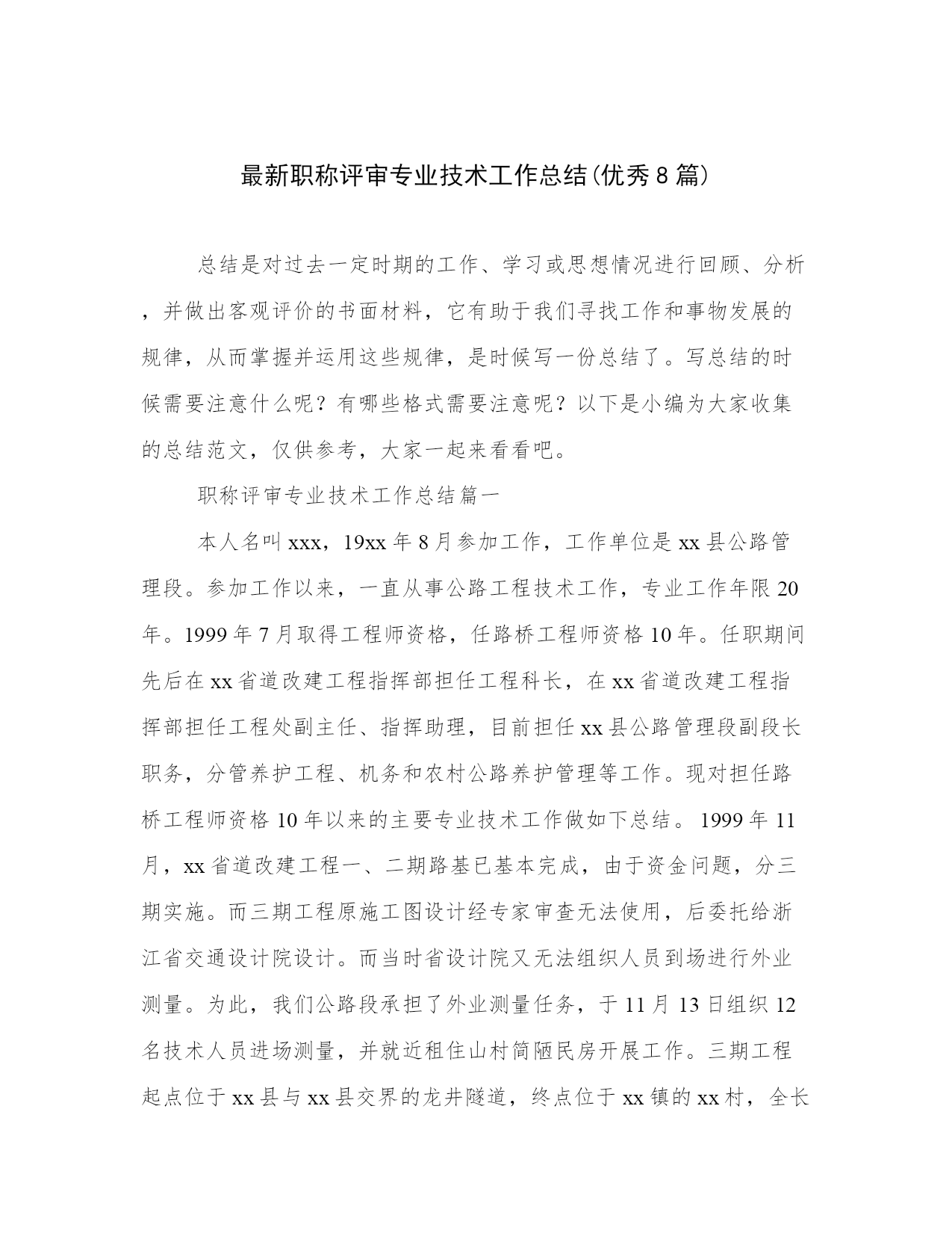 最新职称评审专业技术工作总结(优秀8篇).docx