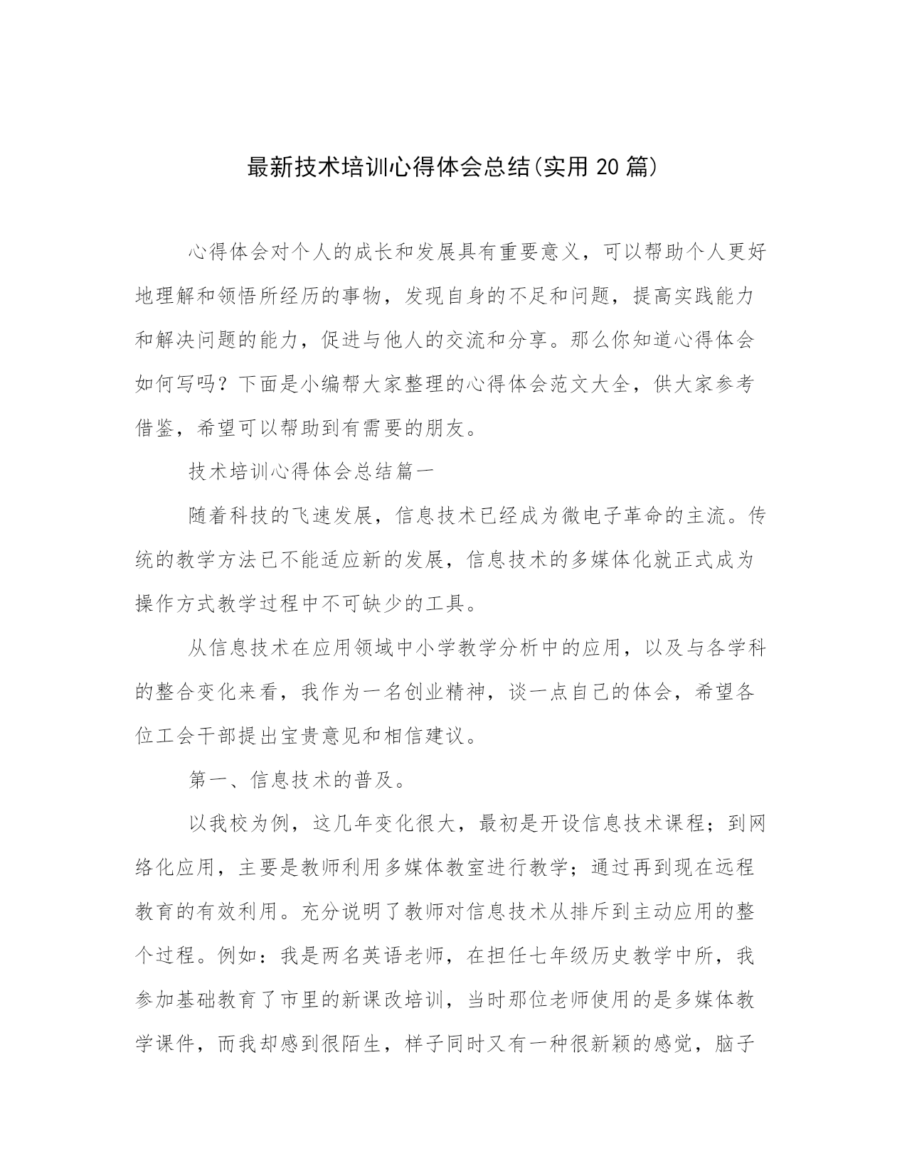 最新技术培训心得体会总结(实用20篇).docx