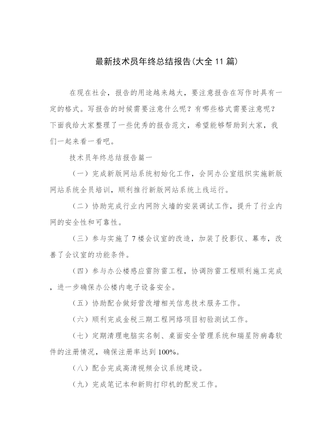 最新技术员年终总结报告(大全11篇).docx
