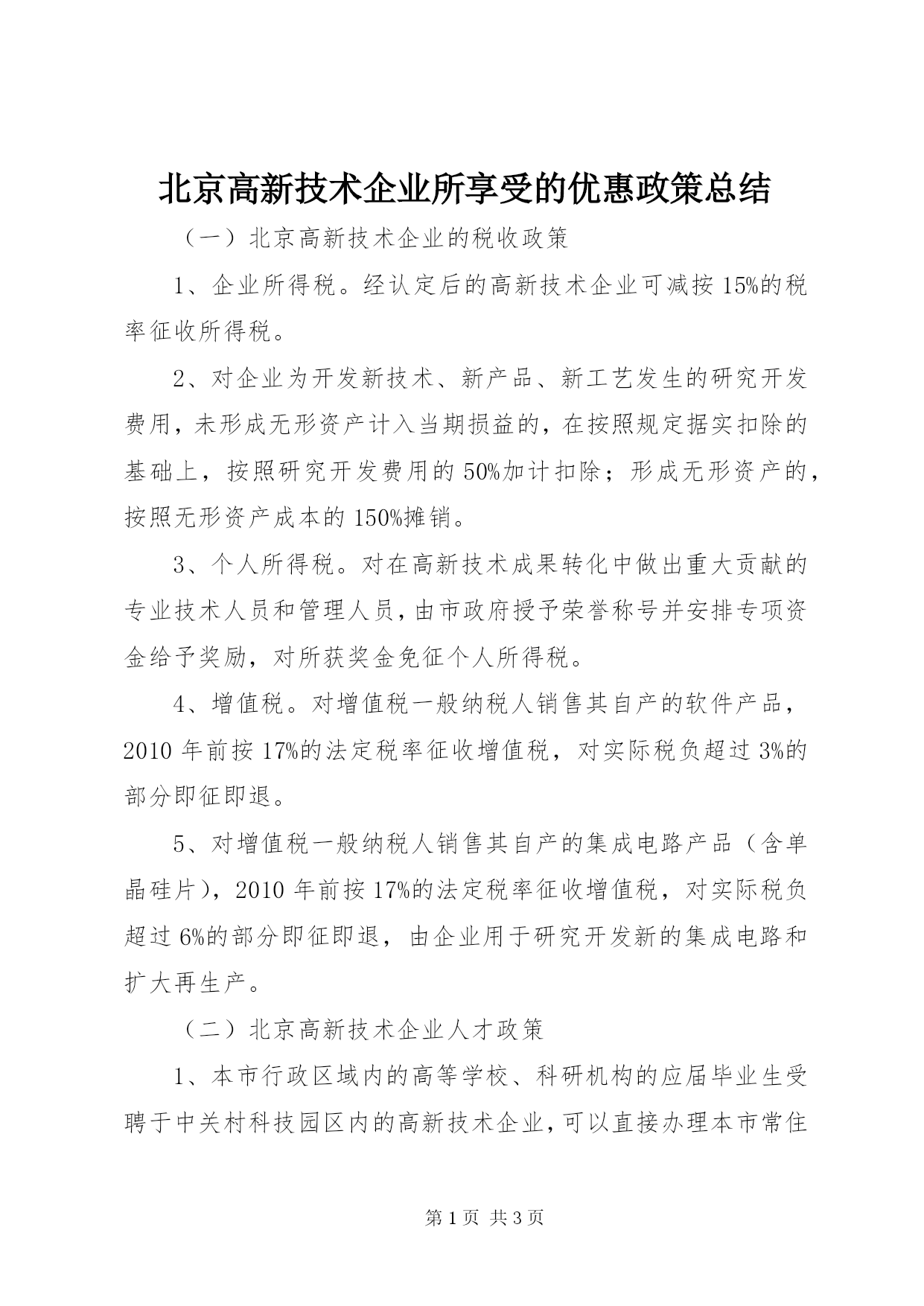 北京高新技术企业所享受的优惠政策总结.docx