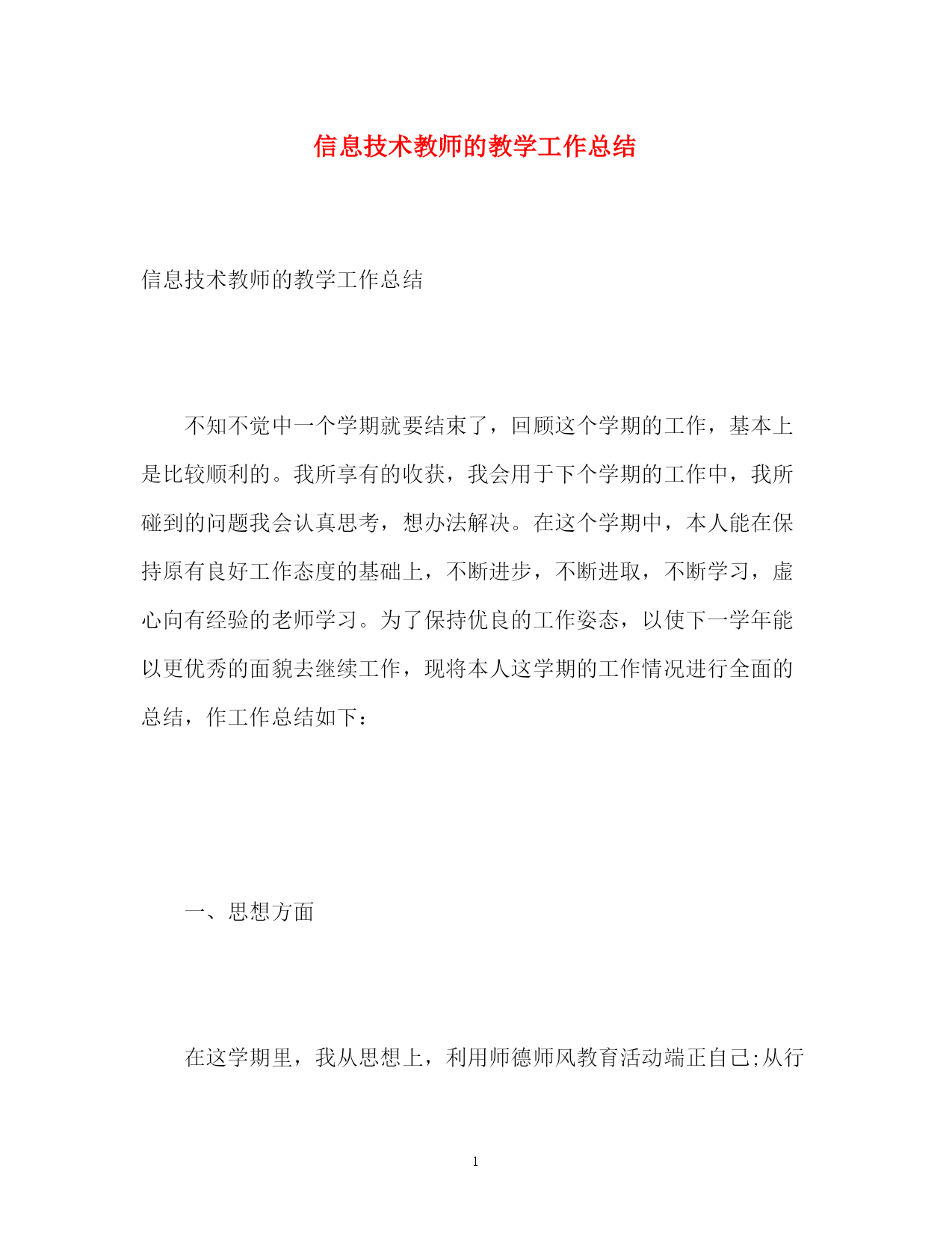 精编之信息技术教师的教学工作总结.docx