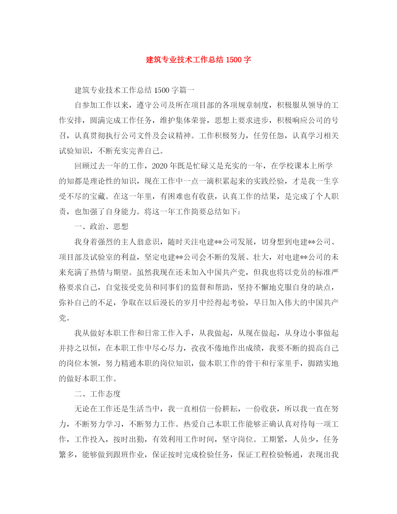 精编之建筑专业技术工作总结1500字.docx