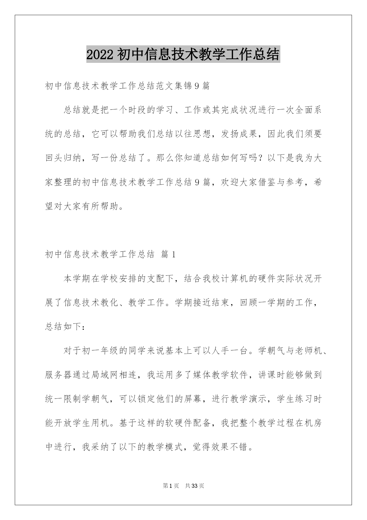 2021年信息技术教学工作参考总结(通用)本学期,我校为适应社会的飞速开展、科学技术的突飞猛进,在党的“xx大”精神和三个代表重要思想的指导下,认真进展新课程改革实验,大力推进素养教育,加强了学校的教育装备工作,充分运用学校的教学仪器和现代化的教学设备,对照现代教育技术示范学校的标准,标准学校的办学行为,端正办学思想,不断加大投入,加强硬件、软件建立,开展师资培训,积极推行运用信息技术手段,掀起信息技术普及、应用、探究、创新的高潮,使教育教学质量迈上新台阶,现将我校信息技术工作总结如下:一、加强领导,分工