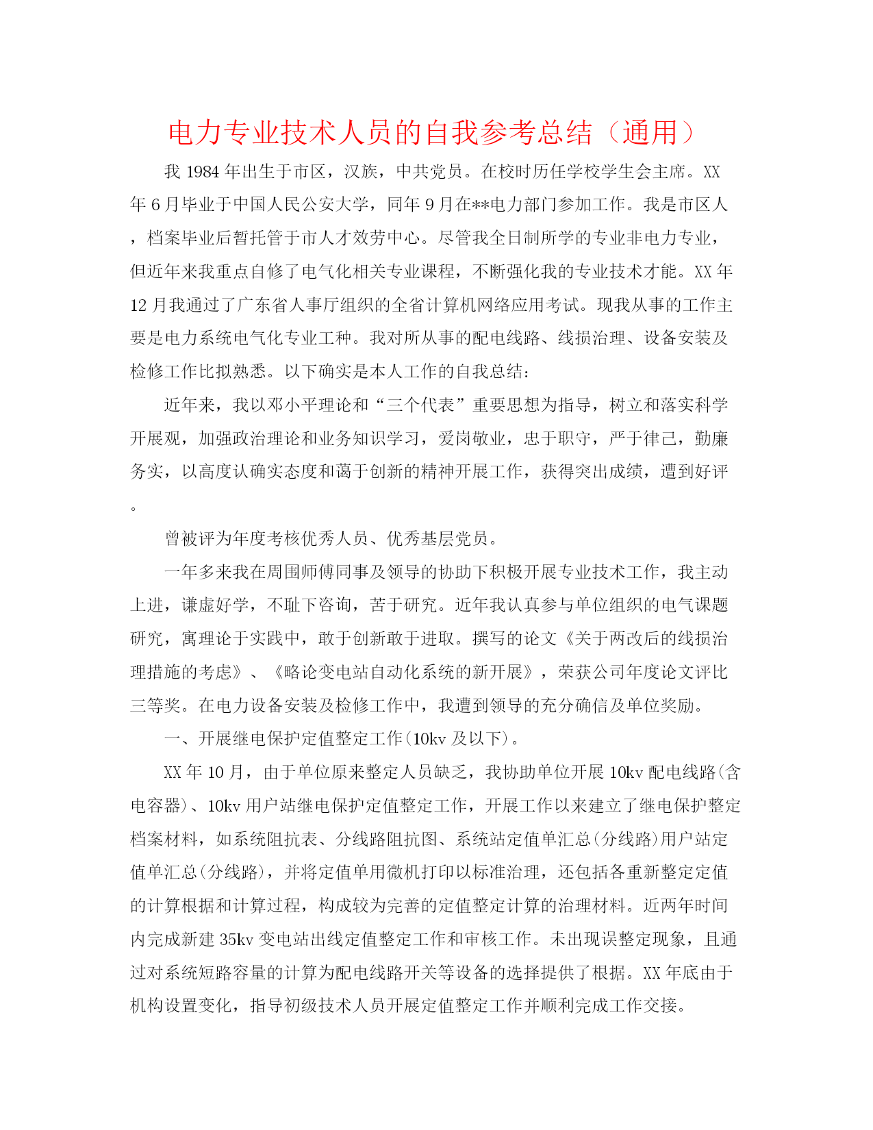 精编之电力专业技术人员的自我参考总结(通用).docx