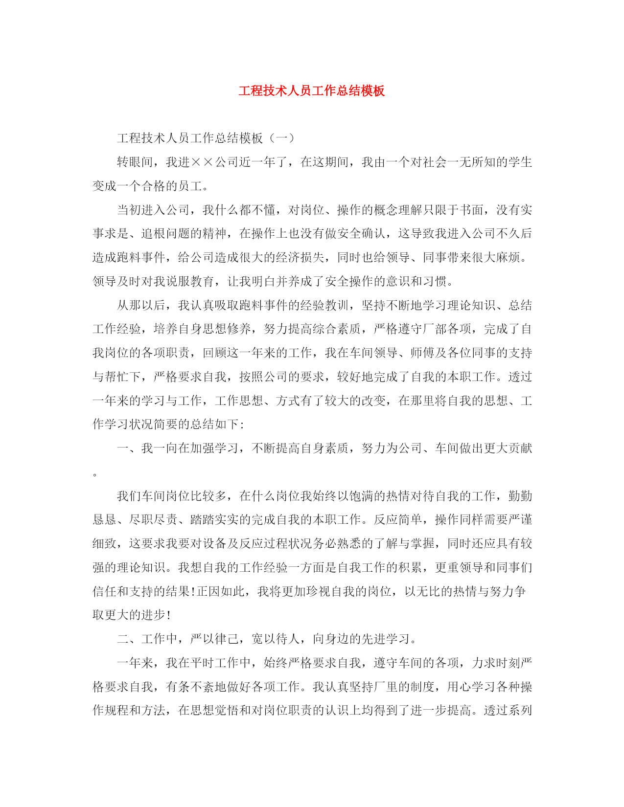 此资料由网络收集而来,如有侵权请告知上传者立即删除。资料共分享,我们负责传递知识。工程技术人员工作总结模板工程技术人员工作总结模板(一)转眼间,我进××公司近一年了,在这期间,我由一个对社会一无所知的学生变成一个合格的员工。当初进入公司,我什么都不懂,对岗位、操作的概念理解只限于书面,没有实事求是、追根问题的精神,在操作上也没有做安全确认,这导致我进入公司不久后造成跑料事件,给公司造成很大的经济损失,同时也给领导、同事带来很大麻烦。领导及时对我说服教育,让我明白并养成了安全操作的意识和习惯。从那以后,我认