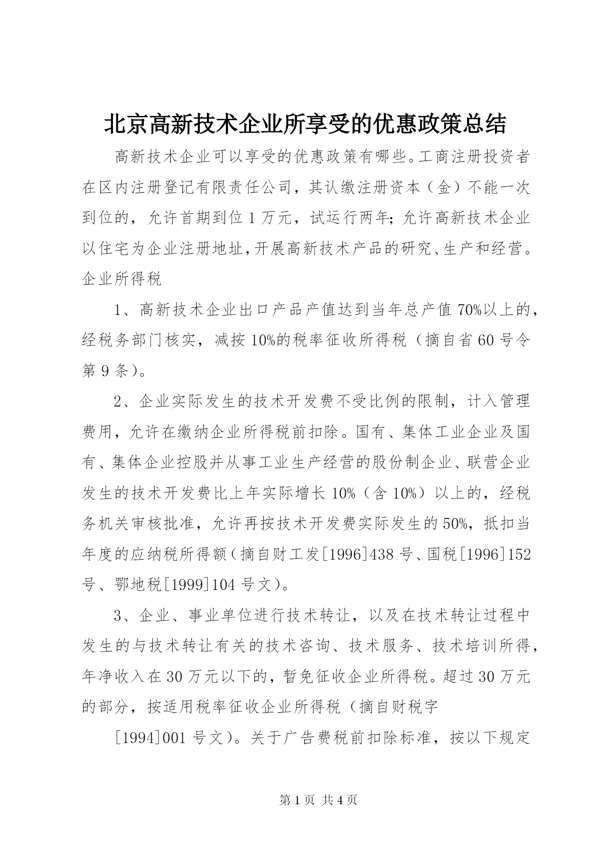 北京高新技术企业所享受的优惠政策总结 (3).docx