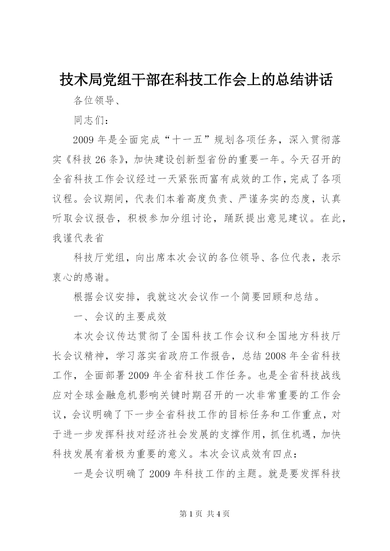 技术局党组干部在科技工作会上的总结讲话 (3).docx