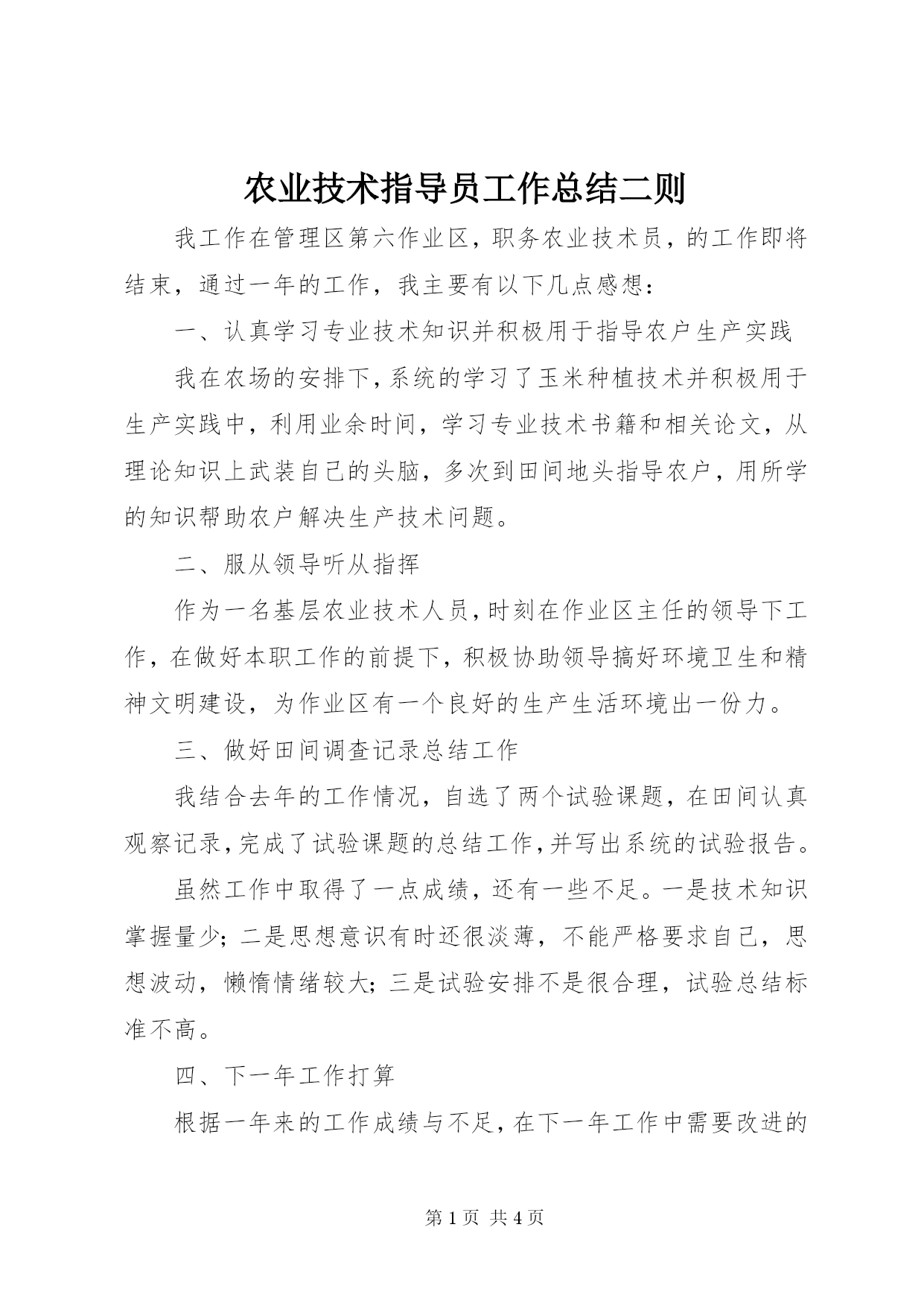 第PAGE\*Arabic\*MERGEFORMAT4页共NUMPAGES\*MERGEFORMAT4页农业技术指导员工作总结二则我工作在管理区第六作业区,职务农业技术员,的工作即将结束,通过一年的工作,我主要有以下几点感想:一、认真学习专业技术知识并积极用于指导农户生产实践我在农场的安排下,系统的学习了玉米种植技术并积极用于生产实践中,利用业余时间,学习专业技术书籍和相关论文,从理论知识上武装自己的头脑,多次到田间地头指导农户,用所学的知识帮助农户解决生产技术问题。二、服从领导听从指挥作为一