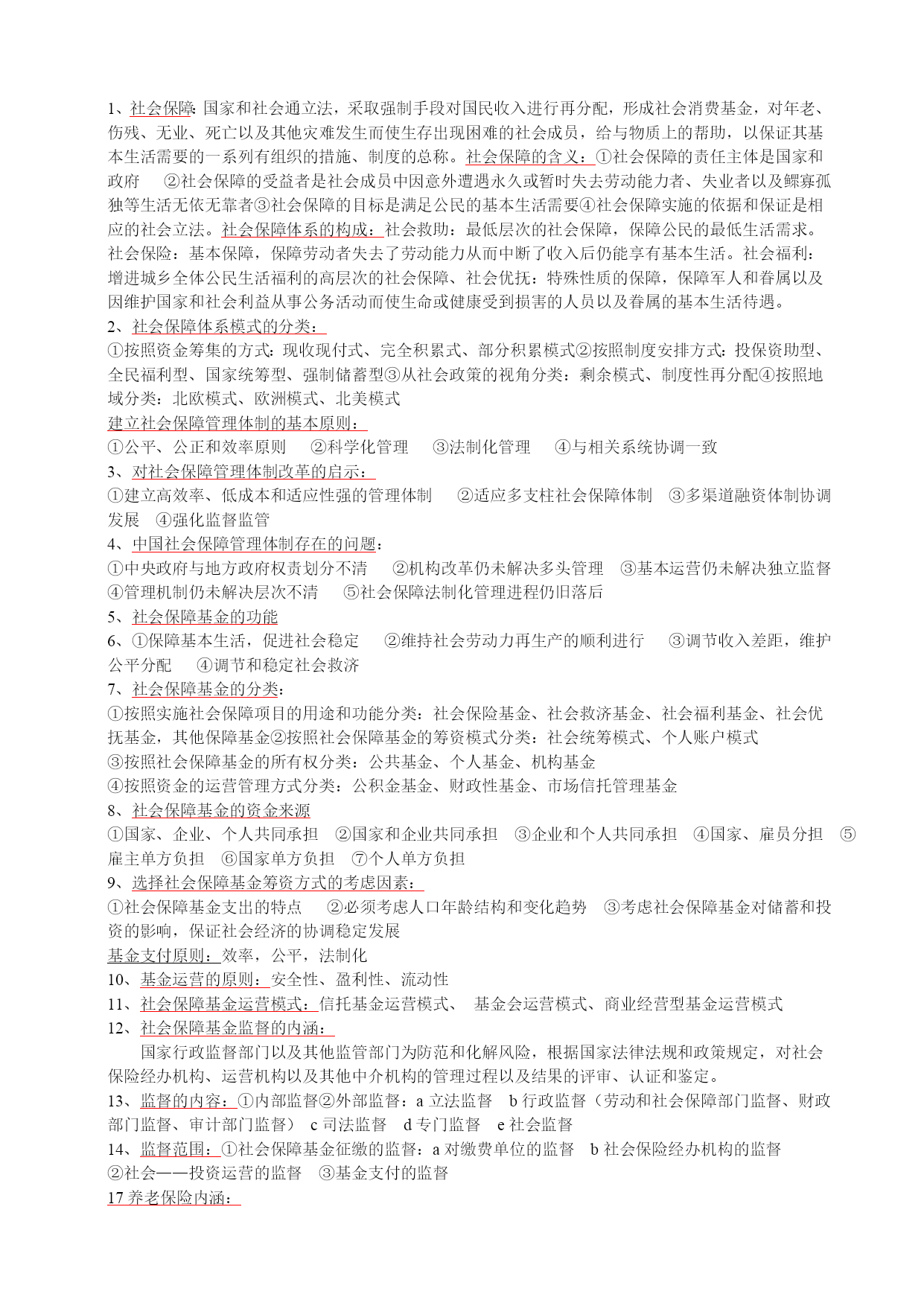 社会保障:国家和社会通立法,采取强制手段对国民收入进行再分配,形成社会消费基金,对年老、伤残、无业、死亡以及其他灾难发生而使生存出现困难的社会成员,给与物质上的帮助,以保证其基本生活需要的一系列有组织的措施、制度的总称。社会保障的含义:①社会保障的责任主体是国家和政府②社会保障的受益者是社会成员中因意外遭遇永久或暂时失去劳动能力者、失业者以及鳏寡孤独等生活无依无靠者③社会保障的目标是满足公民的基本生活需要④社会保障实施的依据和保证是相应的社会立法。社会保障体系的构成:社会救助:最低层次的社会保障,保障公民
