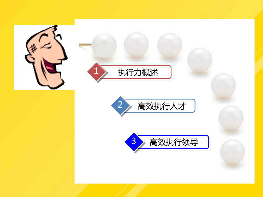 案例一:我们周围是否有这种现象?约哈里窗内部客户vs外部客户公司价值链内部客户完成执行的能力和手段三大原因造成中国企业执行力缺乏惠普执行力模型企业文化建立匿名的同事反馈系统WBS会被分成4致7个大类高效执行力的七种领导行为TARGET/GOAL(Metrics)把小区业主的满意度从50%,提高到75%企业文化是企业在经营活动中形成的经营理念、经营目的、经营方针、价值观念、经营行为、社会责任、经营形象等的总和这个事件发生之后,报纸与电视对李文哲的勇敢表现大肆宣扬,将他捧为英雄。面对现实/体纳现状4、不知道干