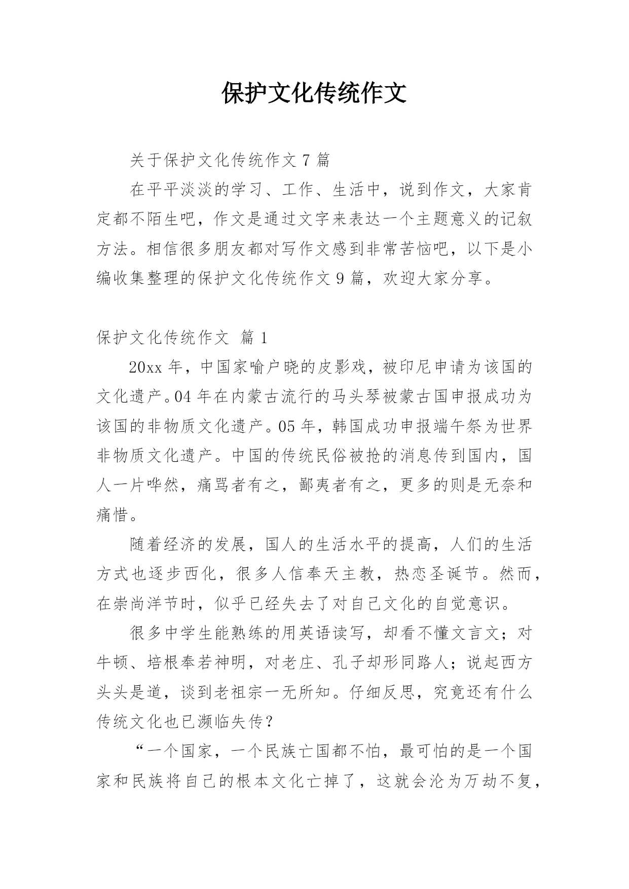 保护文化传统作文关于保护文化传统作文7篇在平平淡淡的学习、工作、生活中,说到作文,大家肯定都不陌生吧,作文是通过文字来表达一个主题意义的记叙方法。相信很多朋友都对写作文感到非常苦恼吧,以下是小编收集整理的保护文化传统作文9篇,欢迎大家分享。保护文化传统作文篇120xx年,中国家喻户晓的皮影戏,被印尼申请为该国的文化遗产。04年在内蒙古流行的马头琴被蒙古国申报成功为该国的非物质文化遗产。05年,韩国成功申报端午祭为世界非物质文化遗产。中国的传统民俗被抢的消息传到国内,国人一片哗然,痛骂者有之,鄙夷者有之,更