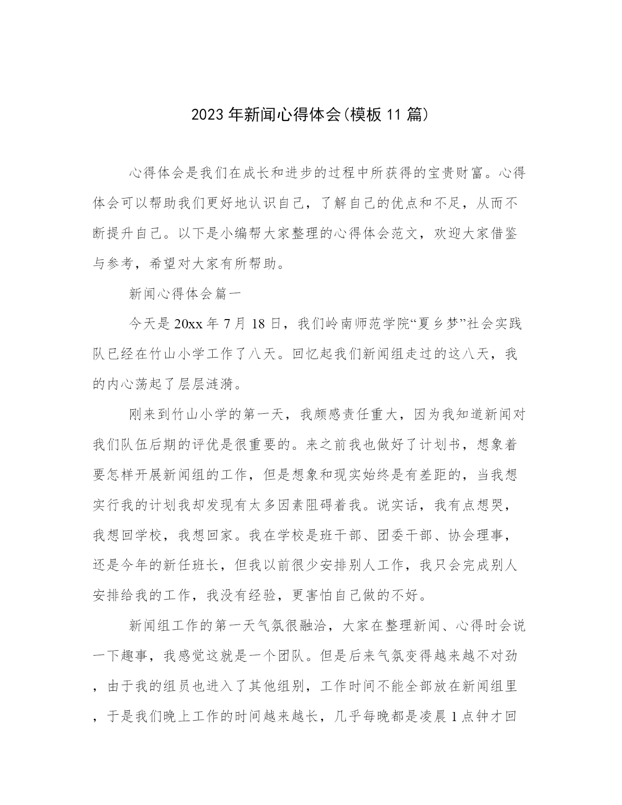 2023年新闻心得体会(模板11篇)心得体会是我们在成长和进步的过程中所获得的宝贵财富。心得体会可以帮助我们更好地认识自己,了解自己的优点和不足,从而不断提升自己。以下是小编帮大家整理的心得体会范文,欢迎大家借鉴与参考,希望对大家有所帮助。新闻心得体会篇一今天是20xx年7月18日,我们岭南师范学院“夏乡梦”社会实践队已经在竹山小学工作了八天。回忆起我们新闻组走过的这八天,我的内心荡起了层层涟漪。刚来到竹山小学的第一天,我颇感责任重大,因为我知道新闻对我们队伍后期的评优是很重要的。来之前我也做好了计划书,