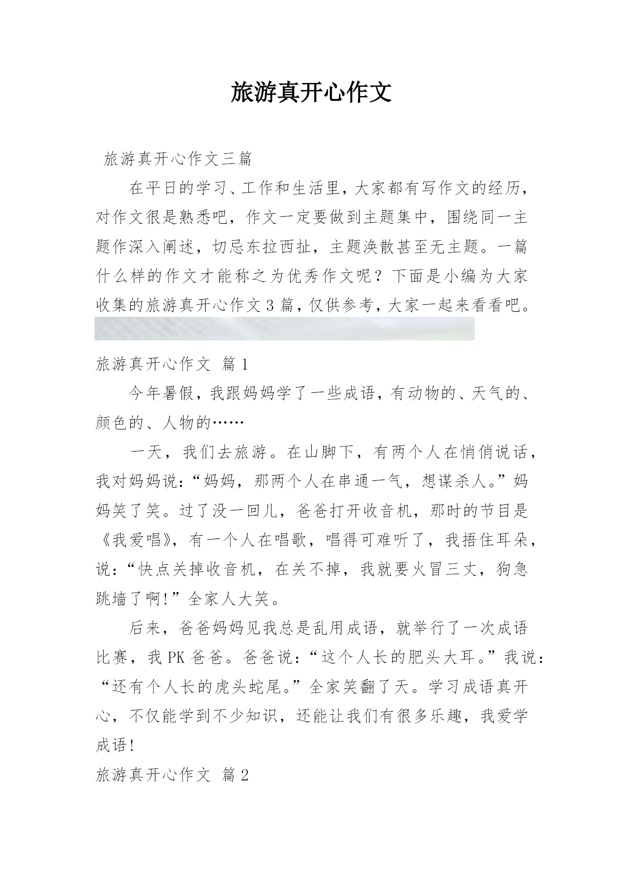 旅游真开心作文旅游真开心作文三篇在平日的学习、工作和生活里,大家都有写作文的经历,对作文很是熟悉吧,作文一定要做到主题集中,围绕同一主题作深入阐述,切忌东拉西扯,主题涣散甚至无主题。一篇什么样的作文才能称之为优秀作文呢?下面是小编为大家收集的旅游真开心作文3篇,仅供参考,大家一起来看看吧。旅游真开心作文篇1今年暑假,我跟妈妈学了一些成语,有动物的、天气的、颜色的、人物的……一天,我们去旅游。在山脚下,有两个人在悄俏说话,我对妈妈说:“妈妈,那两个人在串通一气,想谋杀人。”妈妈笑了笑。过了没一回儿,爸爸打开