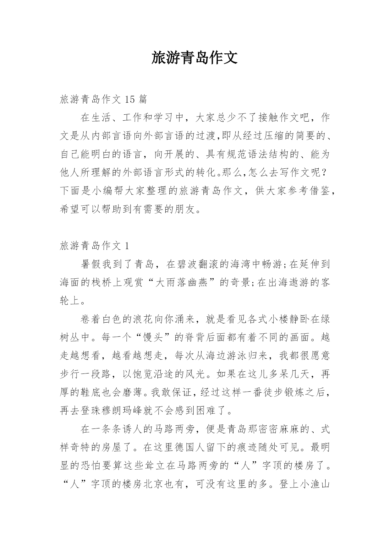 旅游青岛作文旅游青岛作文15篇在生活、工作和学习中,大家总少不了接触作文吧,作文是从内部言语向外部言语的过渡,即从经过压缩的简要的、自己能明白的语言,向开展的、具有规范语法结构的、能为他人所理解的外部语言形式的转化。那么,怎么去写作文呢?下面是小编帮大家整理的旅游青岛作文,供大家参考借鉴,希望可以帮助到有需要的朋友。旅游青岛作文1暑假我到了青岛,在碧波翻滚的海湾中畅游;在延伸到海面的栈桥上观赏“大雨落幽燕”的奇景;在出海遨游的客轮上。卷着白色的浪花向你涌来,就是看见各式小楼静卧在绿树丛中。每一个“馒头”的