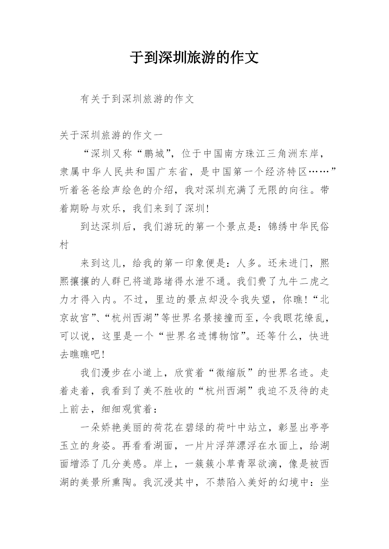 于到深圳旅游的作文.docx