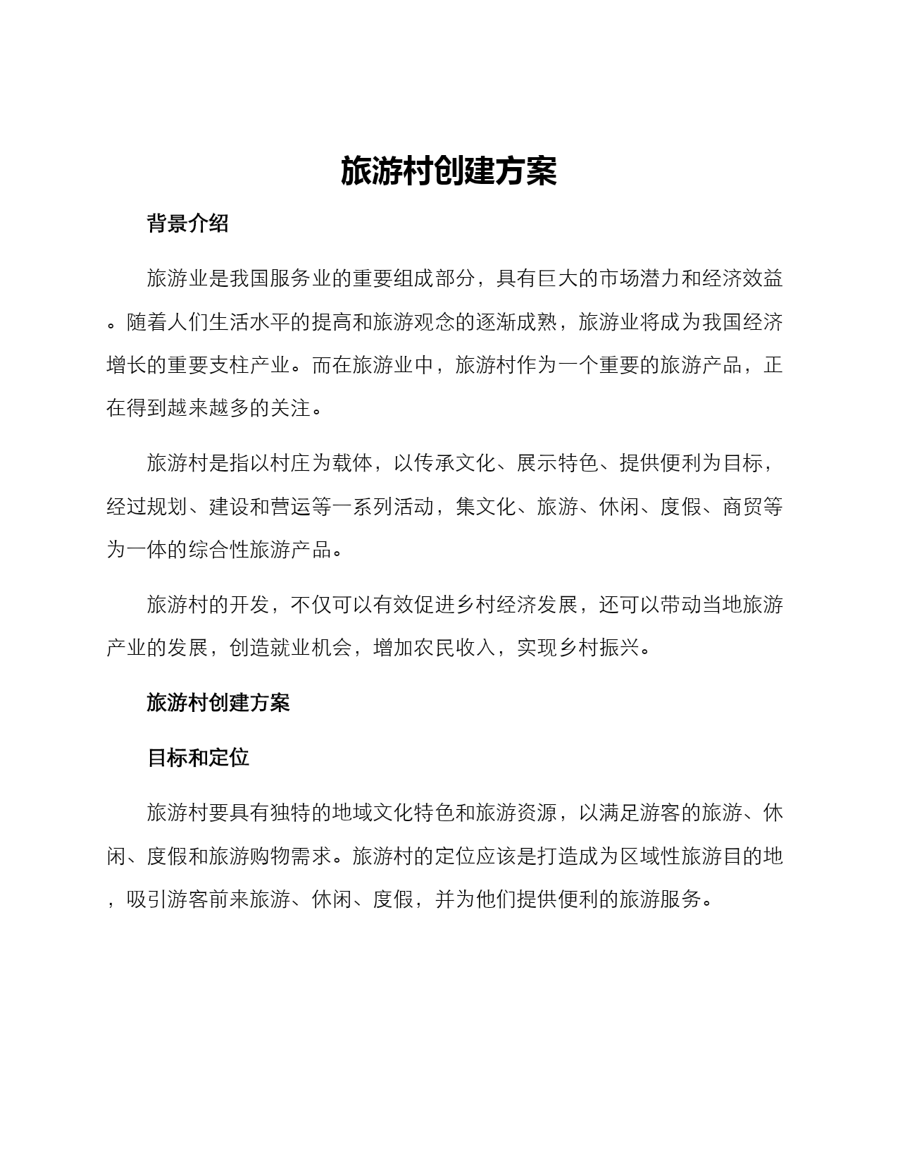 旅游村创建方案背景介绍旅游业是我国服务业的重要组成部分,具有巨大的市场潜力和经济效益。随着人们生活水平的提高和旅游观念的逐渐成熟,旅游业将成为我国经济增长的重要支柱产业。而在旅游业中,旅游村作为一个重要的旅游产品,正在得到越来越多的关注。旅游村是指以村庄为载体,以传承文化、展示特色、提供便利为目标,经过规划、建设和营运等一系列活动,集文化、旅游、休闲、度假、商贸等为一体的综合性旅游产品。旅游村的开发,不仅可以有效促进乡村经济发展,还可以带动当地旅游产业的发展,创造就业机会,增加农民收入,实现乡村振兴。旅游