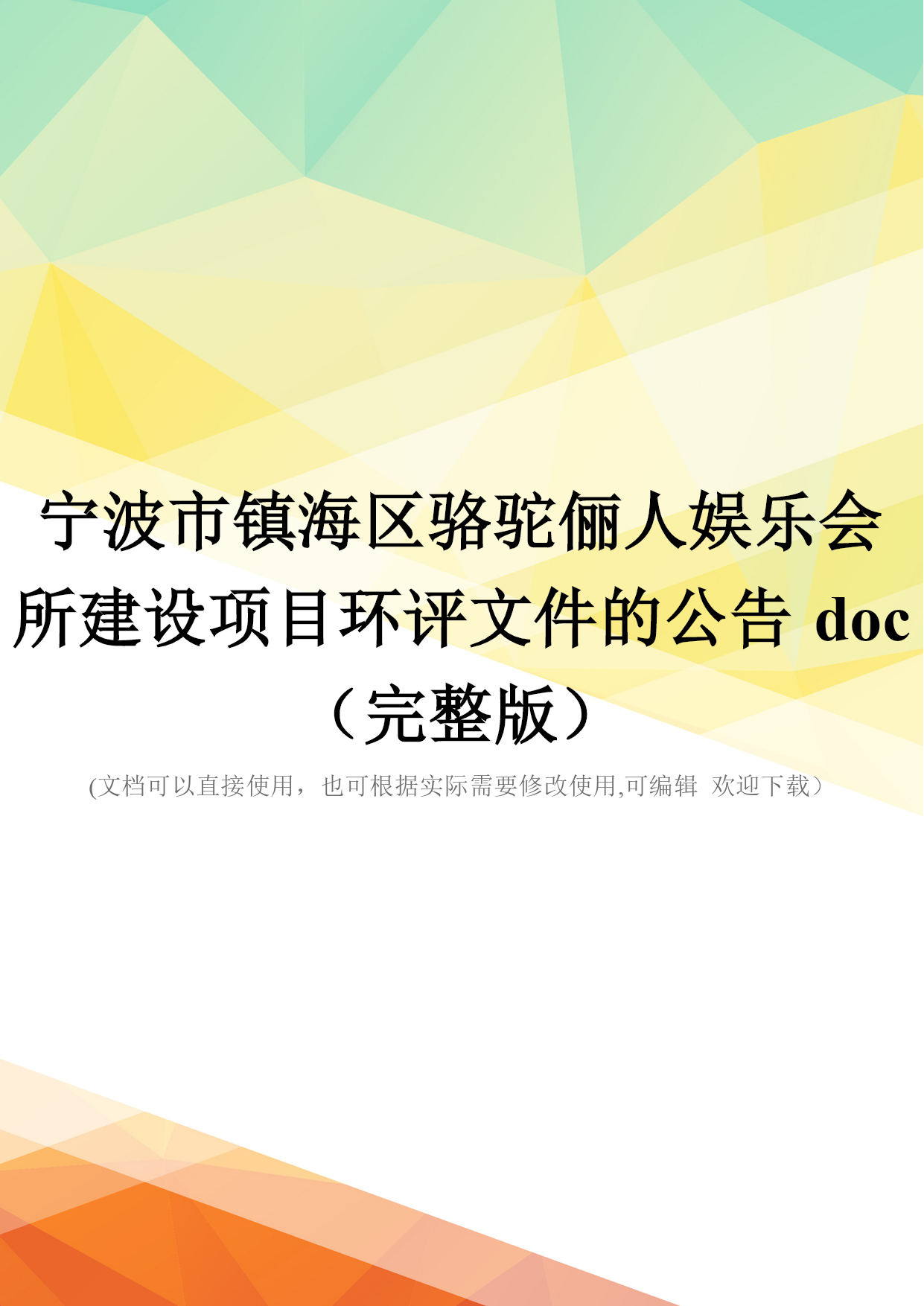 宁波市镇海区骆驼俪人娱乐会所建设项目环评文件的公告doc.doc