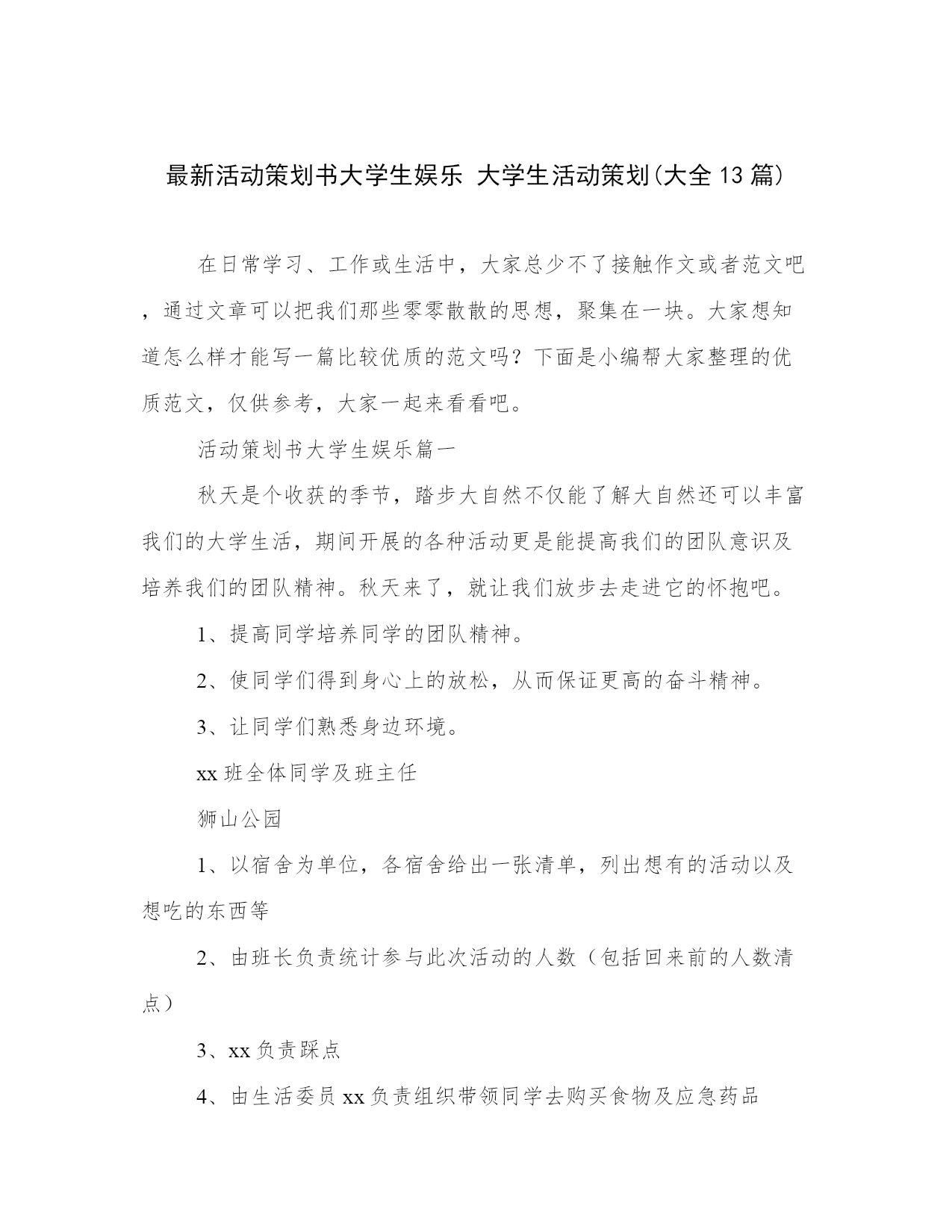 最新活动策划书大学生娱乐 大学生活动策划(大全13篇).docx
