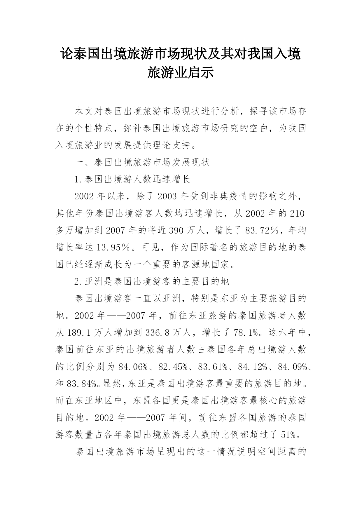 论泰国出境旅游市场现状及其对我国入境旅游业启示.docx