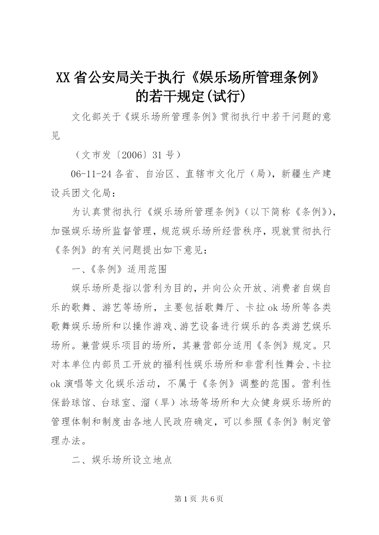 XX省公安局关于执行《娱乐场所管理条例》的若干规定(试行) (5).docx