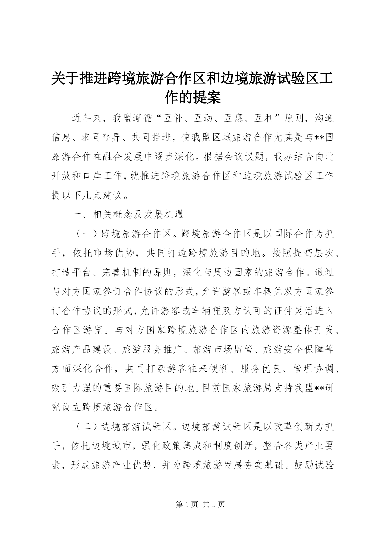 关于推进跨境旅游合作区和边境旅游试验区工作的提案.docx