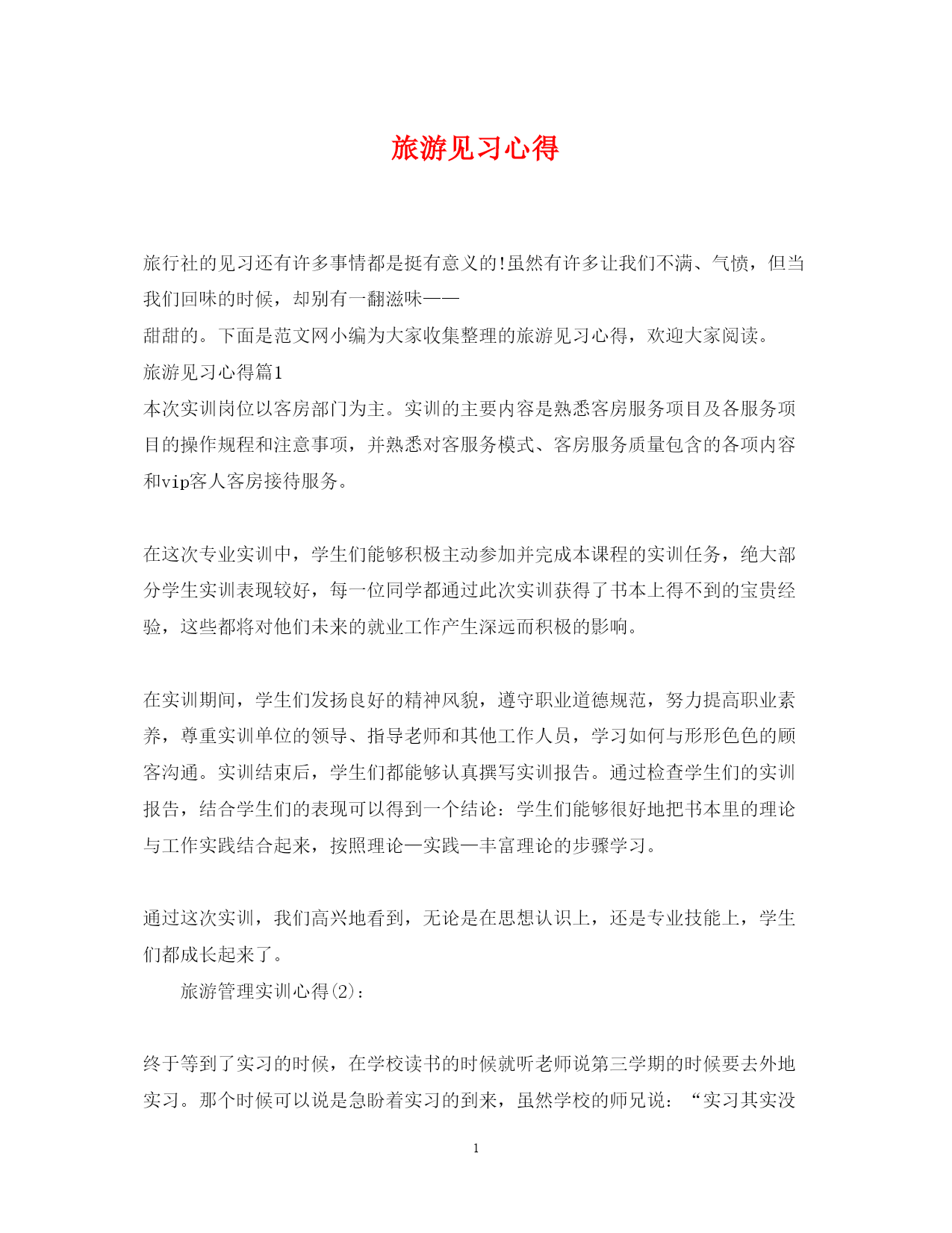 此资料由网络收集而来,如有侵权请告知上传者立即删除。资料共分享,我们负责传递知识。PAGEPAGE9旅游见习心得旅行社的见习还有许多事情都是挺有意义的!虽然有许多让我们不满、气愤,但当我们回味的时候,却别有一翻滋味——甜甜的。下面是范文网小编为大家收集整理的旅游见习心得,欢迎大家阅读。旅游见习心得篇1本次实训岗位以客房部门为主。实训的主要内容是熟悉客房服务项目及各服务项目的操作规程和注意事项,并熟悉对客服务模式、客房服务质量包含的各项内容和vip客人客房接待服务。在这次专业实训中,学生们能够积