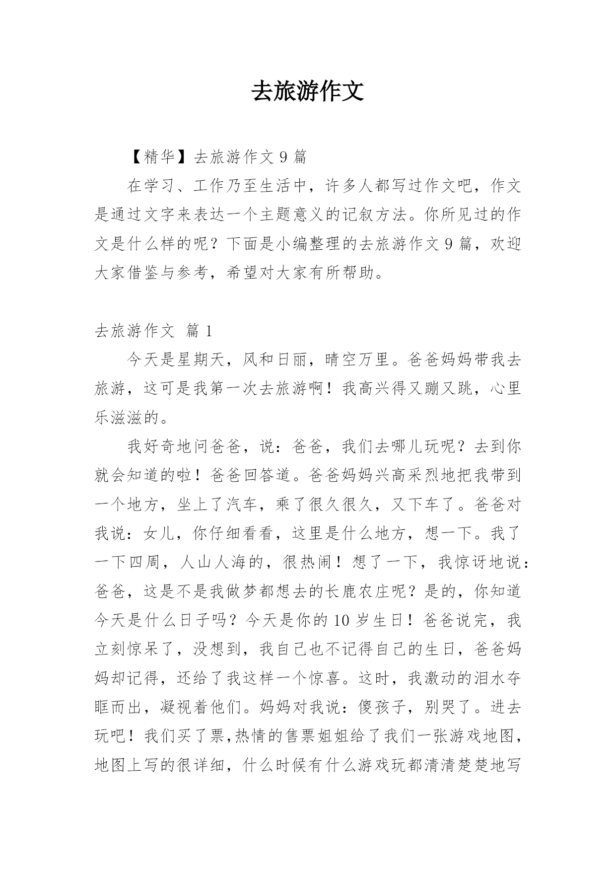 去旅游作文【精华】去旅游作文9篇在学习、工作乃至生活中,许多人都写过作文吧,作文是通过文字来表达一个主题意义的记叙方法。你所见过的作文是什么样的呢?下面是小编整理的去旅游作文9篇,欢迎大家借鉴与参考,希望对大家有所帮助。去旅游作文篇1今天是星期天,风和日丽,晴空万里。爸爸妈妈带我去旅游,这可是我第一次去旅游啊!我高兴得又蹦又跳,心里乐滋滋的。我好奇地问爸爸,说:爸爸,我们去哪儿玩呢?去到你就会知道的啦!爸爸回答道。爸爸妈妈兴高采烈地把我带到一个地方,坐上了汽车,乘了很久很久,又下车了。爸爸对我说:女儿,你