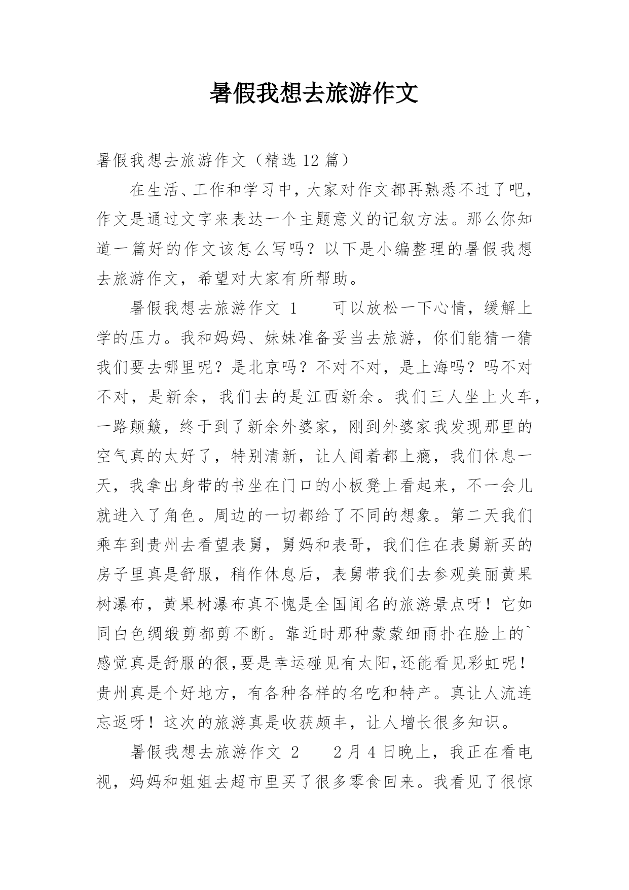 暑假我想去旅游作文暑假我想去旅游作文(精选12篇)在生活、工作和学习中,大家对作文都再熟悉不过了吧,作文是通过文字来表达一个主题意义的记叙方法。那么你知道一篇好的作文该怎么写吗?以下是小编整理的暑假我想去旅游作文,希望对大家有所帮助。暑假我想去旅游作文1可以放松一下心情,缓解上学的压力。我和妈妈、妹妹准备妥当去旅游,你们能猜一猜我们要去哪里呢?是北京吗?不对不对,是上海吗?吗不对不对,是新余,我们去的是江西新余。我们三人坐上火车,一路颠簸,终于到了新余外婆家,刚到外婆家我发现那里的空气真的太好了,特别清新